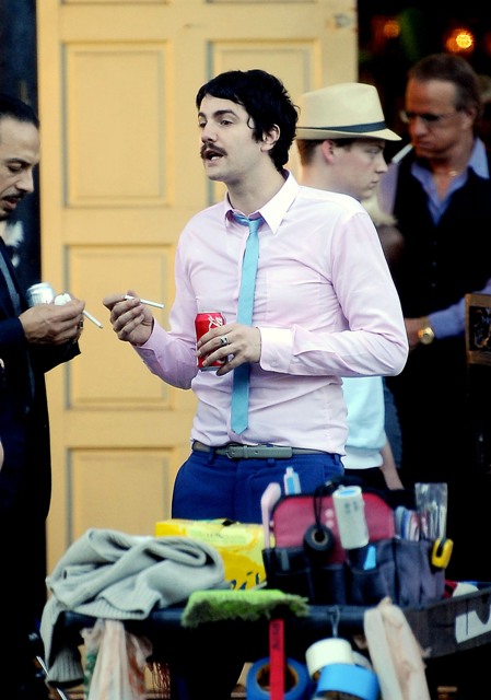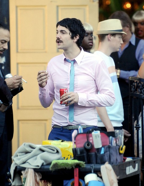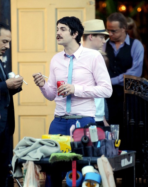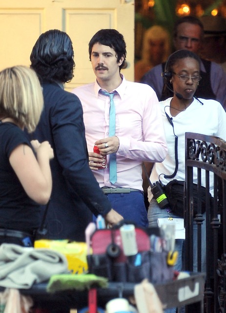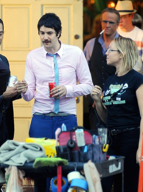 Jim Sturgess was photographed on the set of Electric Slide yesterday in LA. It’s the true story about a dude from the 80s who sold furniture but also robbed banks on the side because he thought that might turn on his girlfriend. Isabel Lucas plays the girlfriend. Aside from “cheated on Adrian Grenier with Shia LaBeouf” and “flower child”, what do we know about this girl? Does she have a personality? Do you care? She walks around often with pale lips and a middle part and I’m not sure I need more.
