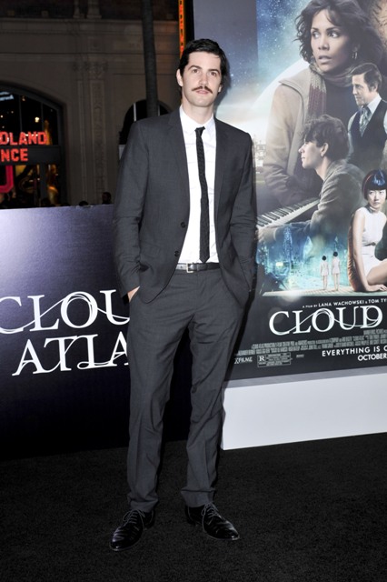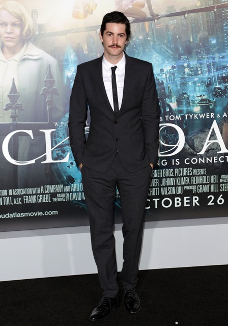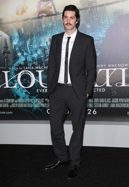 This is Jim Sturgess at the LA premiere of Cloud Atlas last night getting ready for Movember I guess? Or a movie role? The moustache doesn’t bother me. There’s something else that bothers me more.