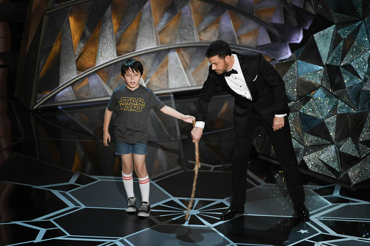 I read more than one headline that said Jimmy Kimmel’s monologue was ‘surprisingly bold’ or ‘unflinching’, and I don’t understand what show they were watching. I guess his monologue was straightforward, in that it acknowledged the pay disparity between Mark Wahlberg and Michelle Williams, or the bit about how nobody but white men could open a movie until last spring, but it wasn’t necessarily funny – it was just true.