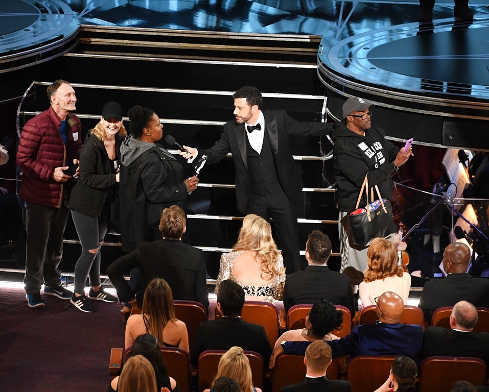 Gags like the tourists who paraded through the theatre are always one part funny and one part condescending, but telling someone whose name is Yulary that it’s not a real name, as opposed to Patrick, is being a dick. That’s a real person, who may or may not have known what they were getting into. Way to tell her she’s not a real person. It wasn’t just Yulary either; Kimmel made a point of making fun of Mahershala Ali’s name several times, which is a nice way to undermine someone who’s just won a huge award and a pretty obvious indicator that Kimmel thinks only Anglo names are ‘real’ and ‘normal’, which is…not exactly distancing himself or the show from the #OscarsSoWhite labels.