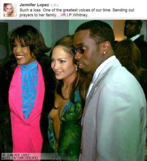 Oh but here’s another interesting photo that has not been removed from her Twitter. It’s from the Grammys in 2000 when JLo was wearing that Versace dress that pretty much made her career. As you can see, she’s in between Whitney Houston and Puff Daddy (that was his name...then). In the original shot though, Bobby Brown is standing on the other side of Whitney. JLo bought the photo from the agency, zoomed close, and cut Bobby out. Oh if it were only so easy in real life, you know?