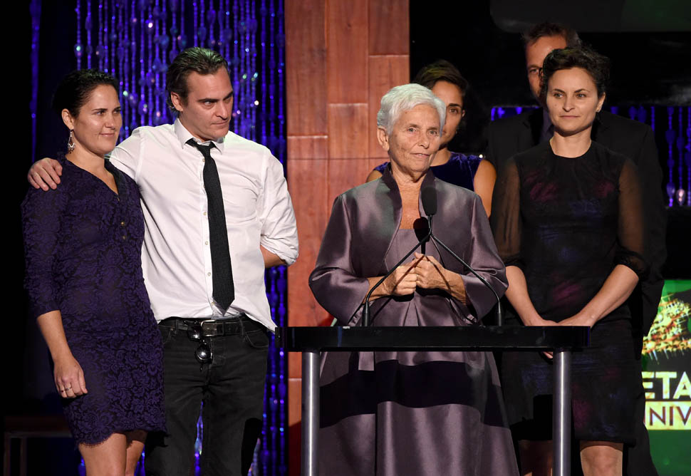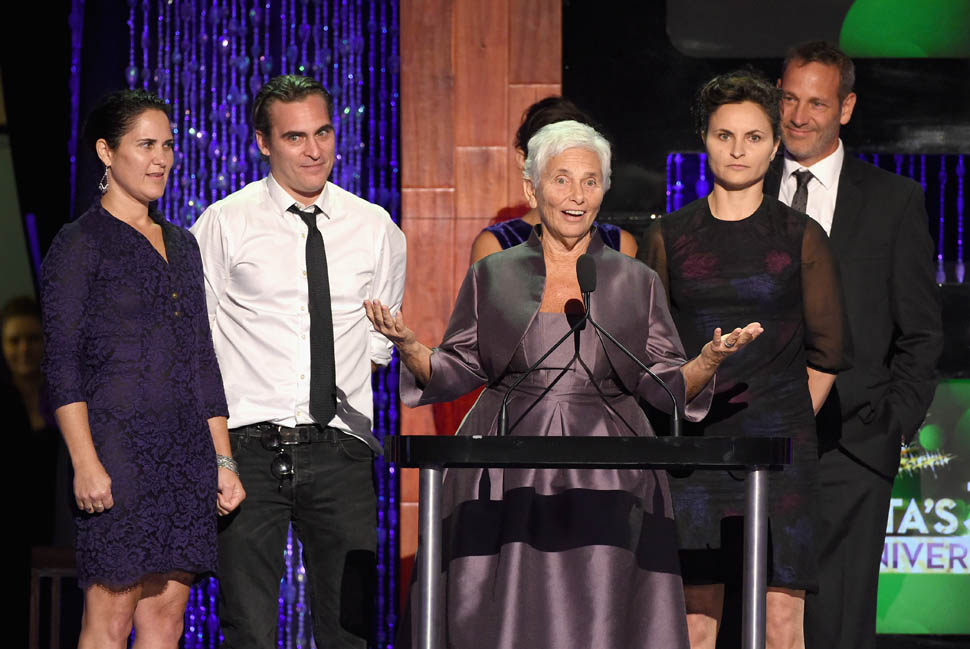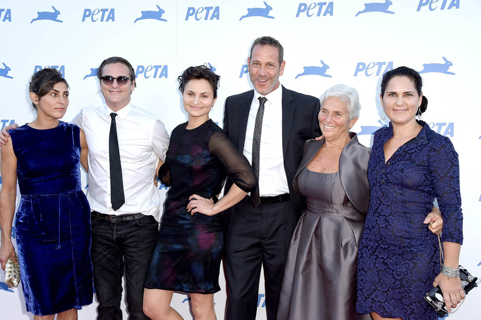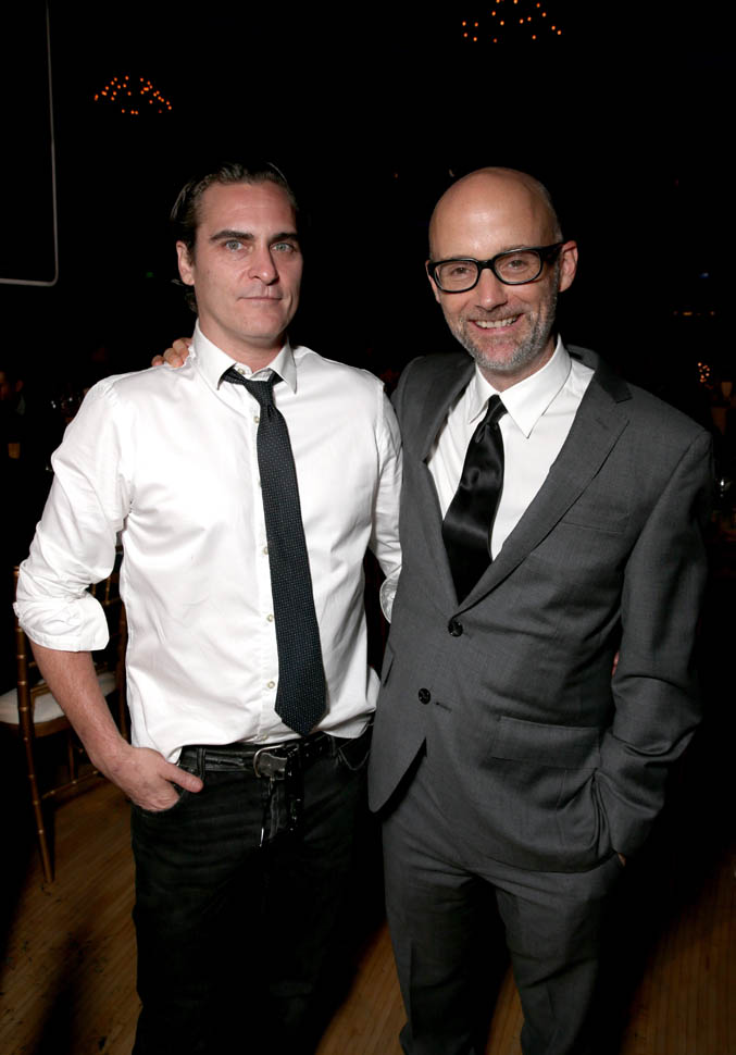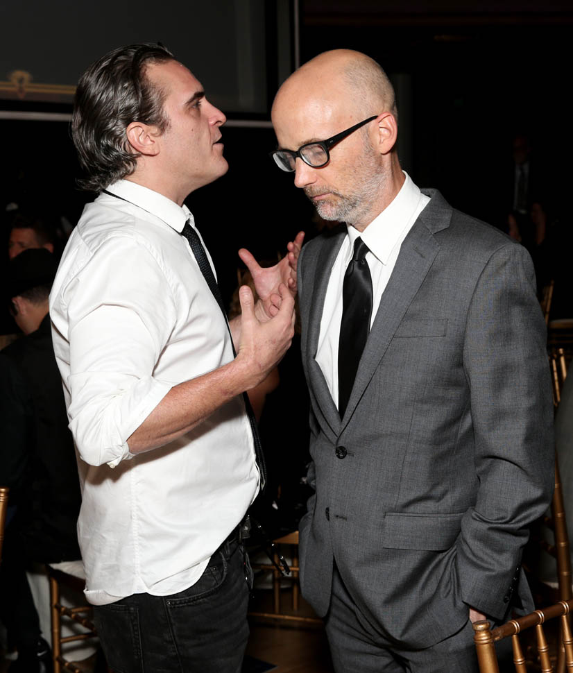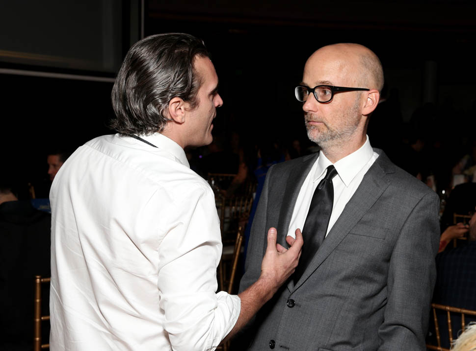 Answer honestly: how curious are you about this conversation? How badly would you have wanted to eavesdrop on Joaquin Phoenix and Moby? Joaquin joined his ma and sisters last night at the PETA 35th anniversary event in honour of River Phoenix. They named an award after him.