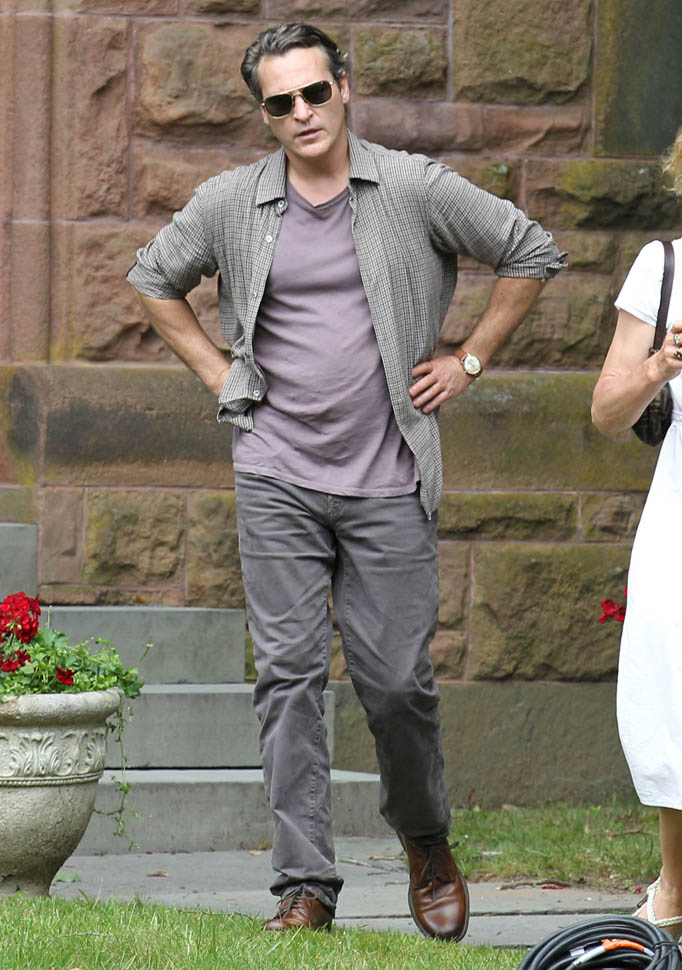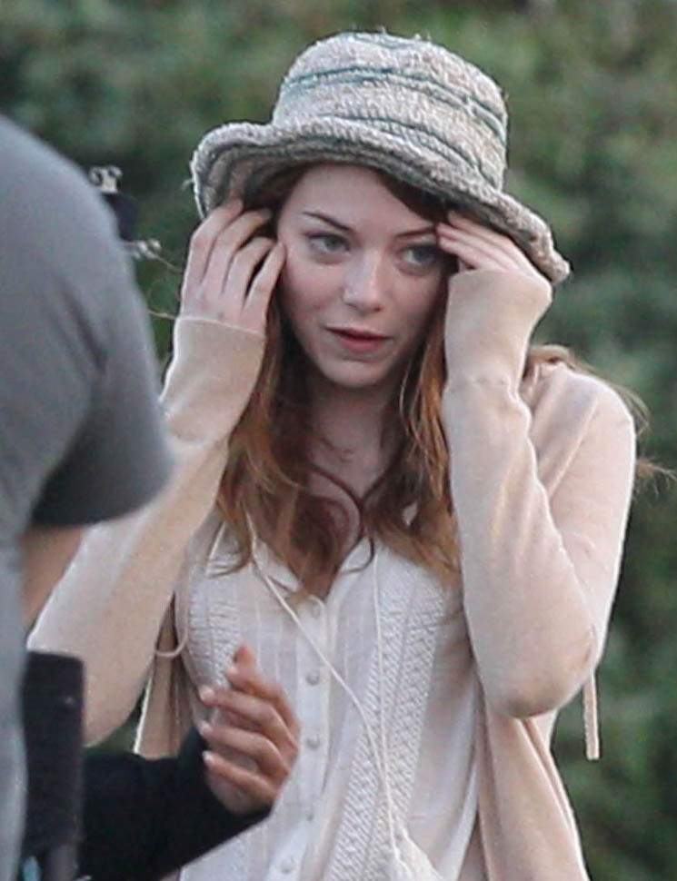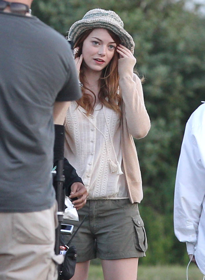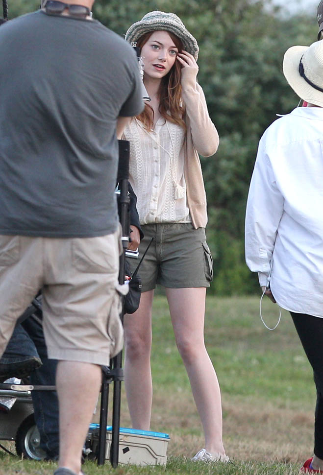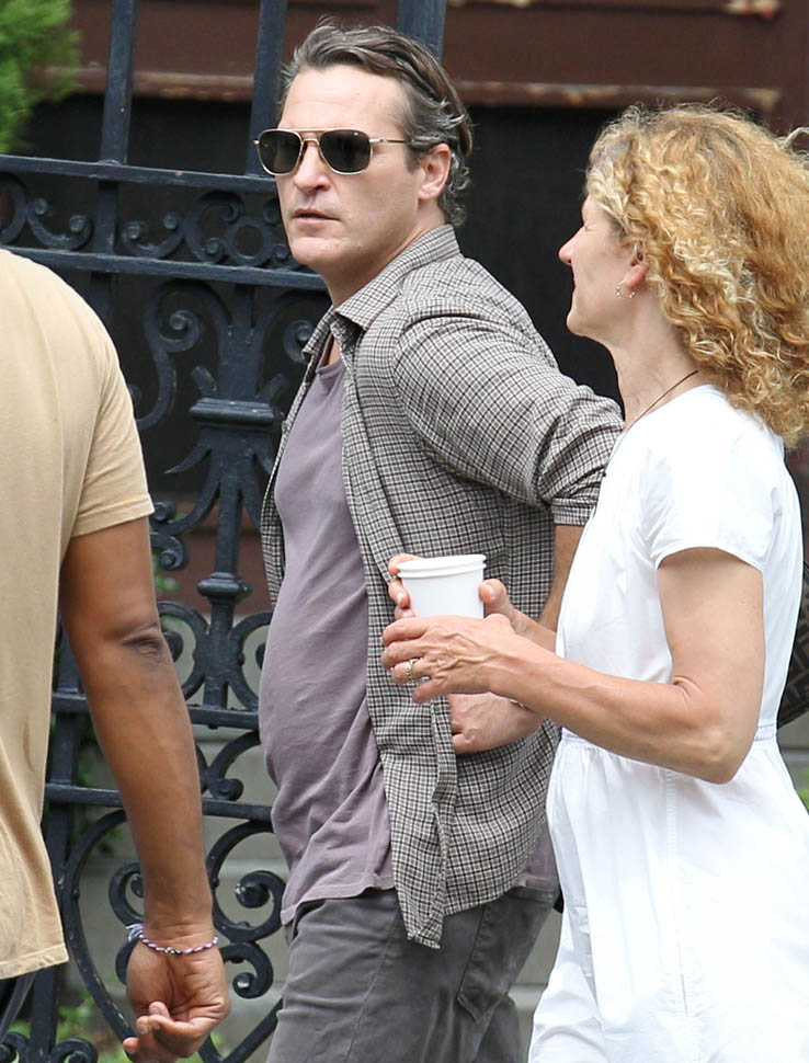 Attached – Phoenix on set yesterday with Emma Stone on the new Woody Allen movie.