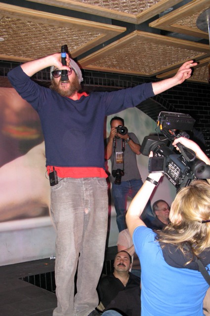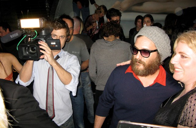 So this weekend, he and Casey were in Vegas at a club called LAVO where Phoenix showcased his creative stylings to an ambivalent crowd. He was in a great mood afterwards, despite FALLING OFF THE STAGE after his 3 song performance and was actually pleasant to fans who approached him for a photo and a hug, a departure from the truculence he’s displayed in the past.