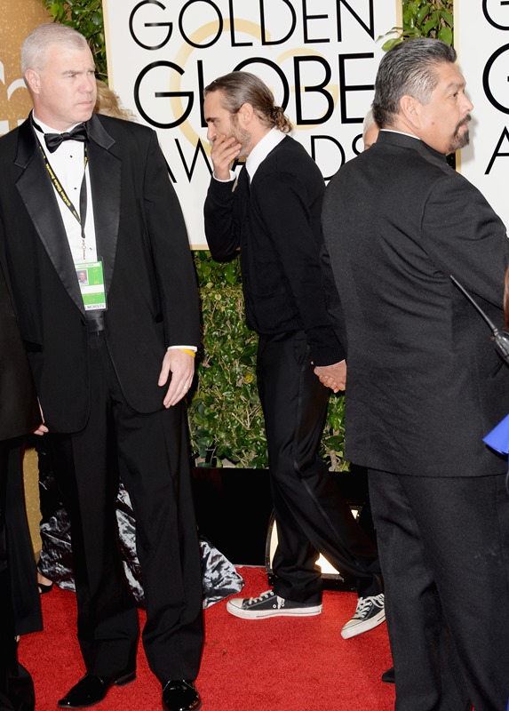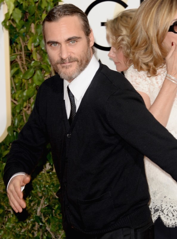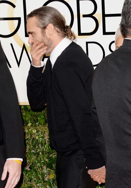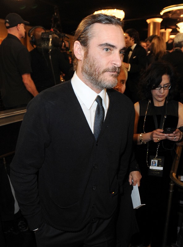 Every time they cut to Joaquin Phoenix last night he was smiling, laughing even. Joaquin Phoenix having a good time at an award show? He seemed totally comfortable.