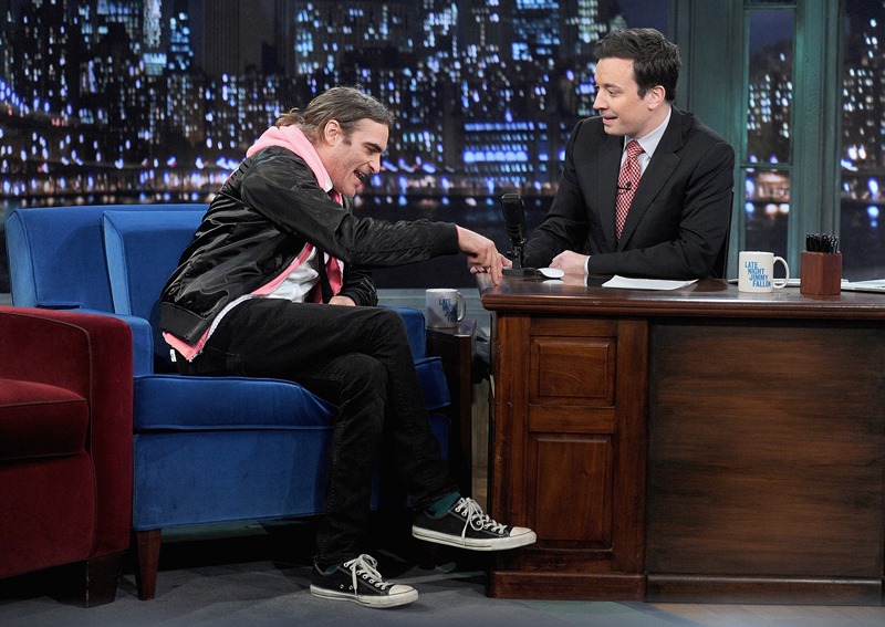 Joaquin Phoenix was on Jimmy Fallon last night. Before every Joaquin interview, I’m always braced for the fontrum. You know. But what a pleasure he was this time – he was loose, he was funny, he was quick, he was nice…