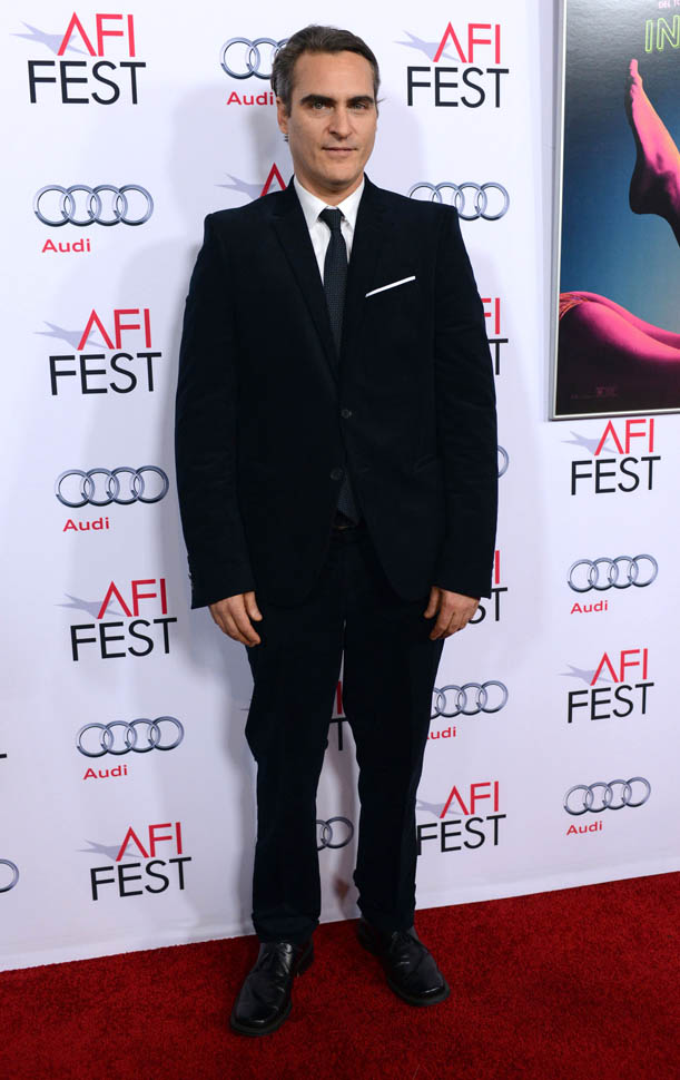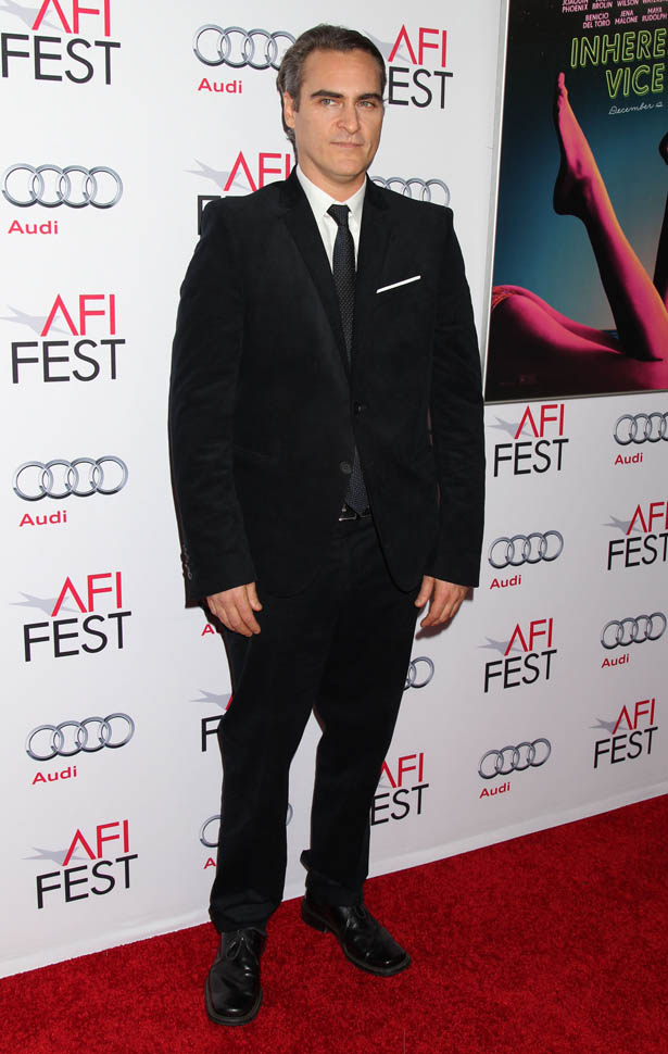 Joaquin Phoenix is promoting Paul Thomas Anderson’s adaptation of Inherent Vice, which comes out next month in the outside position of award season. Never want to count out PTA—or Phoenix, who despite being anti-campaign consistently gets nominated—but it’s really starting to feel like anything coming out after December 1 is late to the party. Anyway, Joaquin Phoenix is doing press, which means giving interviews. He sat down with Stephen Rebello for Playboy (I read it for the interviews) and was surprisingly accessible and likeable. Rebello even asked about River Phoenix and Joaquin didn’t punch him in the face or anything!