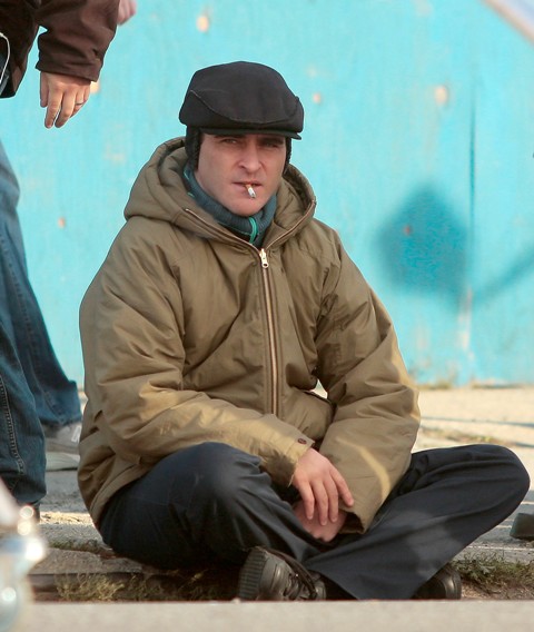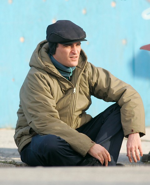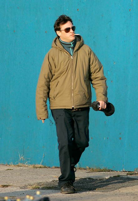 Photos attached of Joaquin shooting Two Lovers yesterday. Looks like he’s cleaned himself up just a little. Good news.