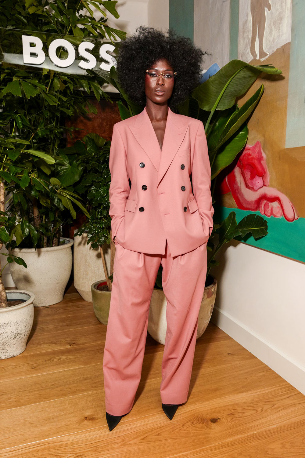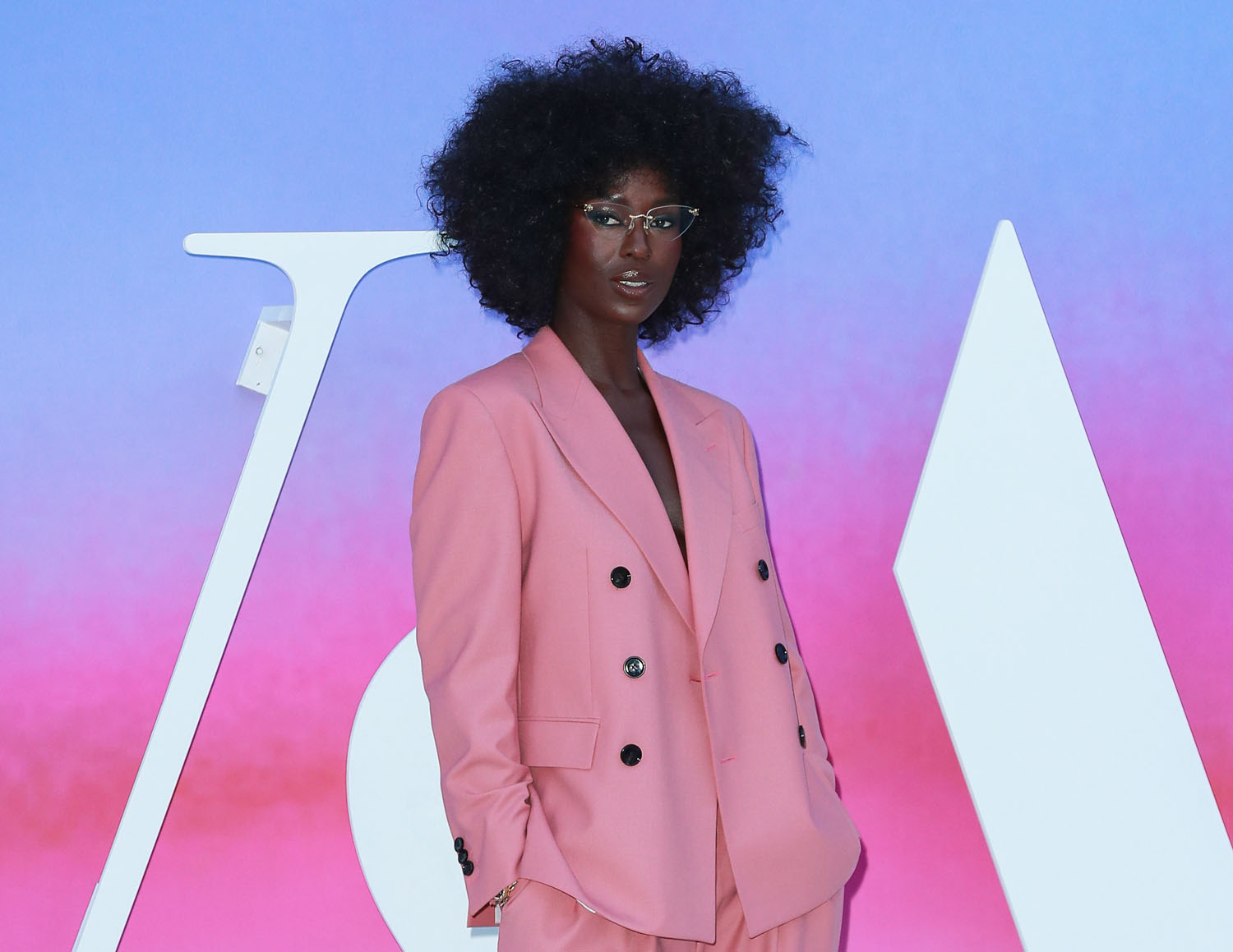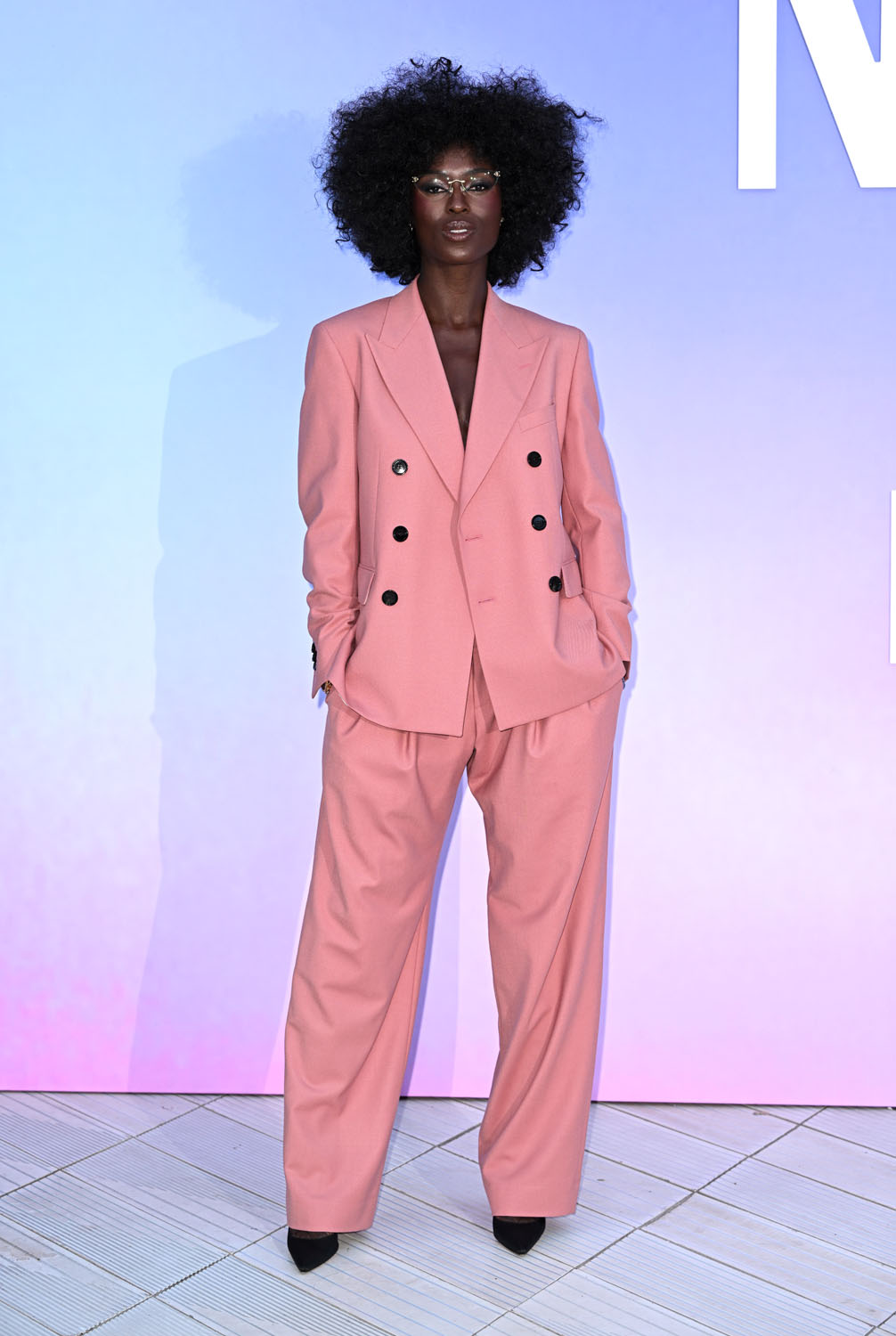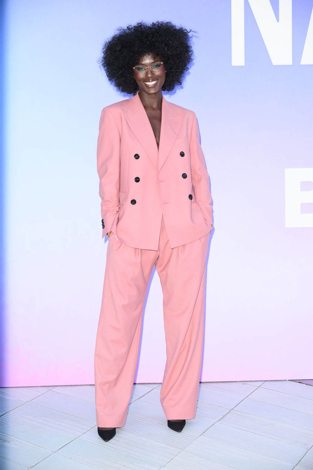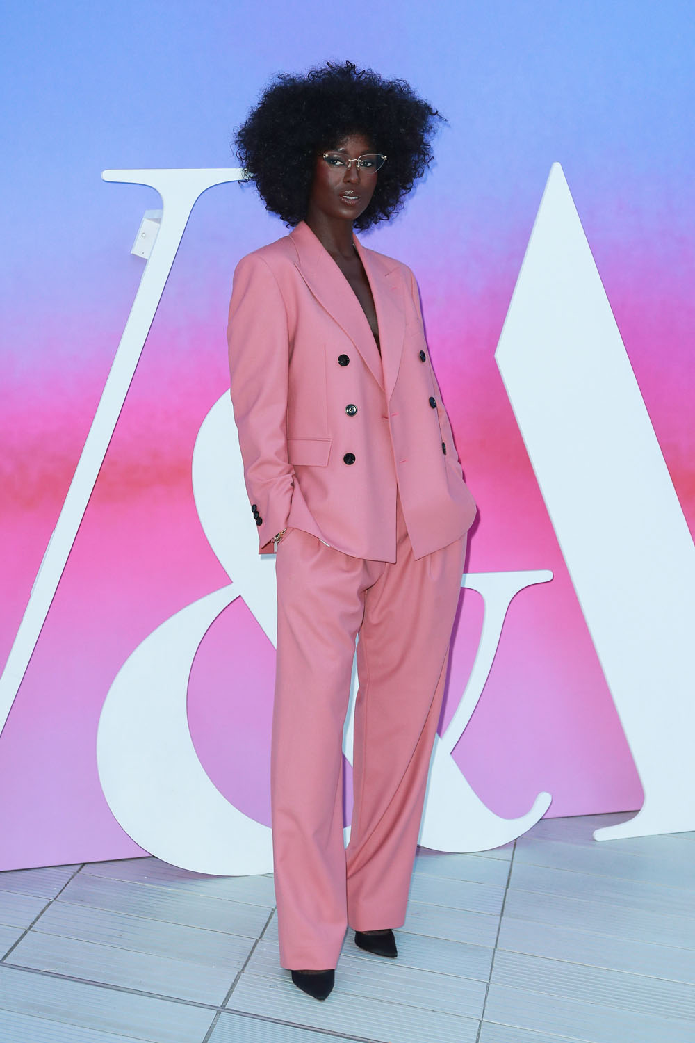 Last night she was at an event to celebrate Naomi Campbell in London wearing the sh-t out of a gorgeous pink suit. I love the cut of the pants and the glasses!