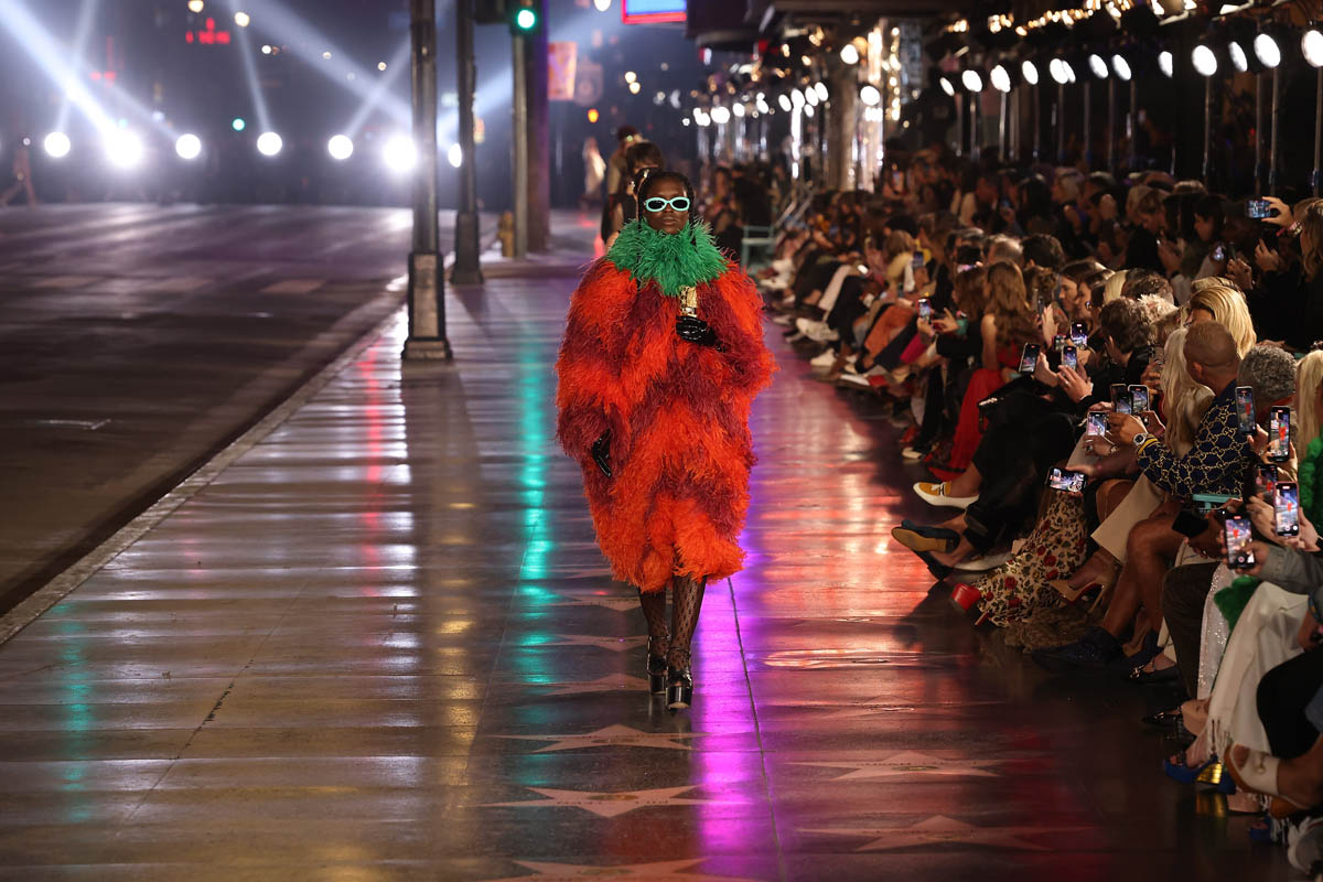 And on the style side, J.Crew works on Jodie just as much as Gucci does. Jodie was one of the celebrities who walked the runway at Gucci’s Love Parade fashion show in Hollywood the other night. She’s been a Gucci ambassador for a while now so it wasn’t a surprise at all to see her in one of the most high-key outfits of the night. Those glasses!