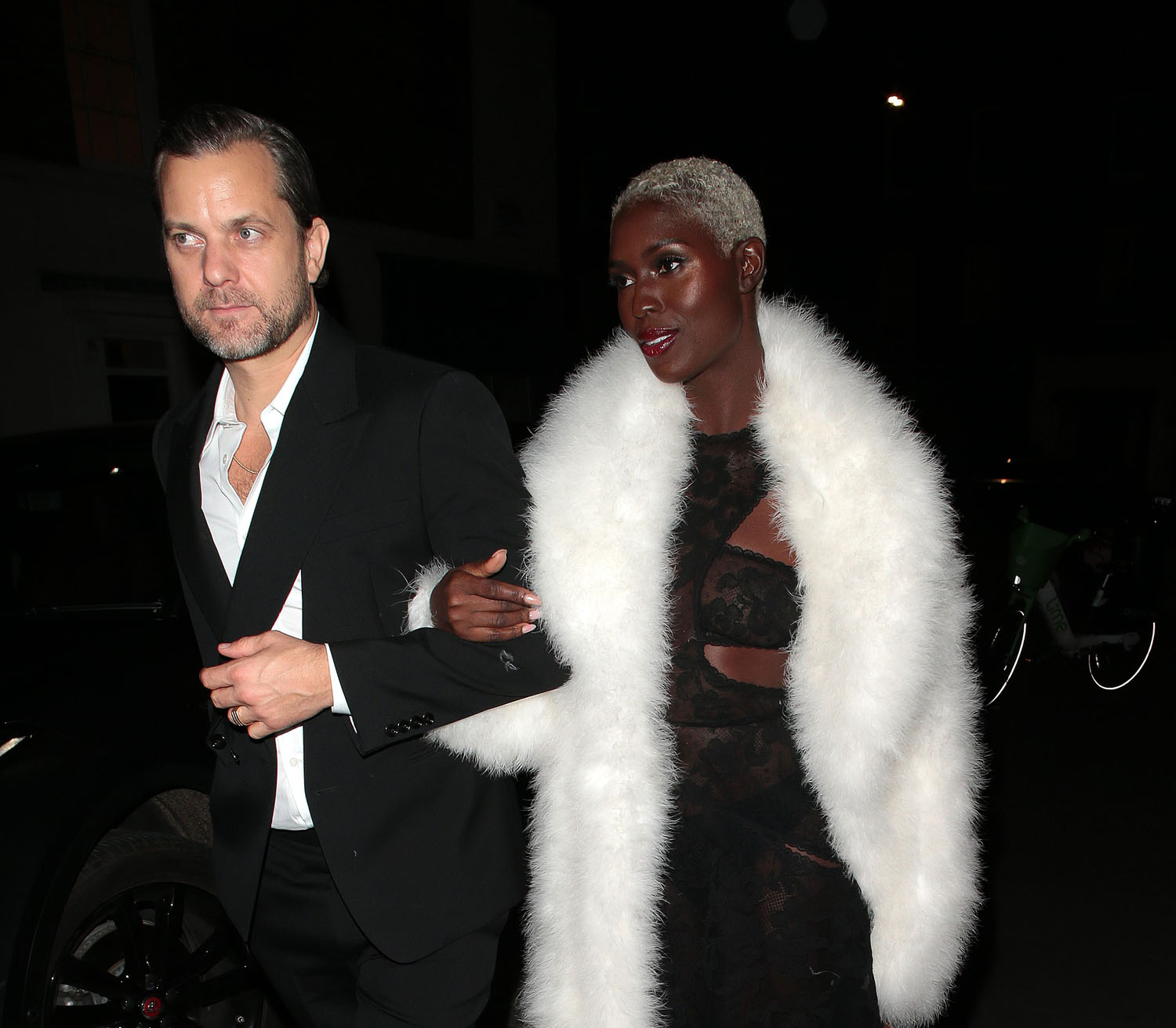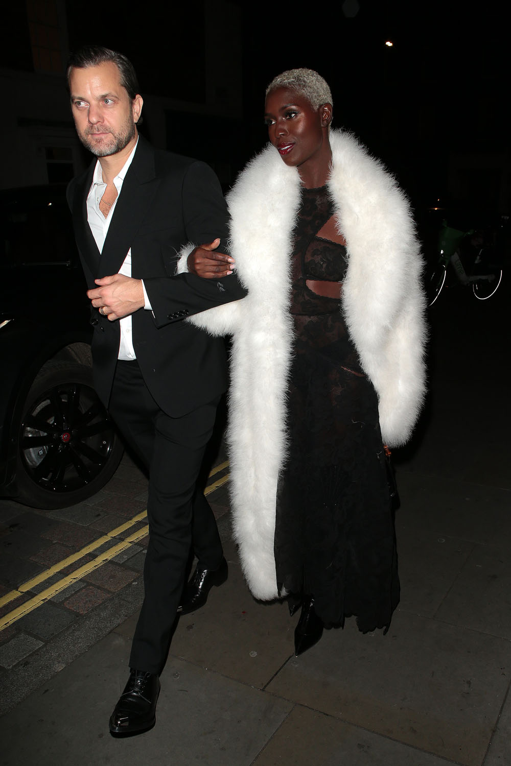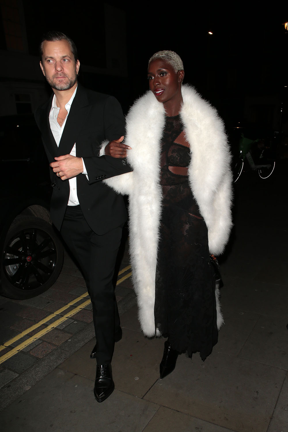 But even when the show was over, Jodie wasn’t over because there’s always the after-party and that required an outfit change too. She kept the white coat but put on a black dress underneath it that matched her date. Joshua Jackson was with her, he’s been with her in London for a few weeks now, and everything is fine, it seems, to cap off an excellent year in fashion for Jodie.