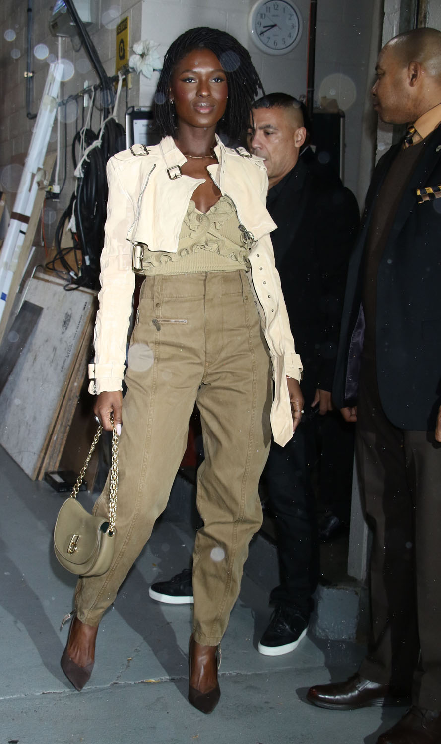 This post was originally just going to be about Jodie Turner-Smith’s looks in New York this week while promoting The Agency. But then I just watched her interview with Jimmy Fallon on The Tonight Show and Jimmy asked her about her daughter (who was backstage) and Jodie talked about taking her to see Wicked on Broadway.
