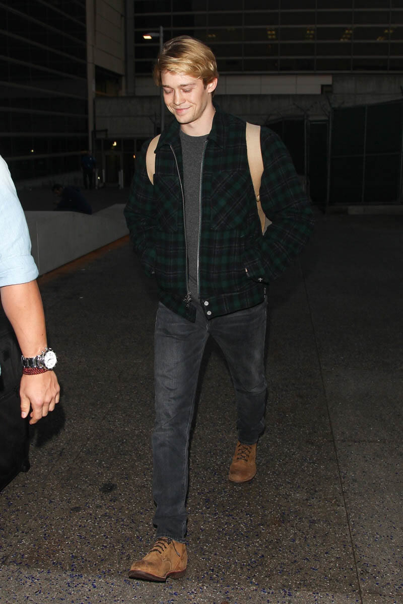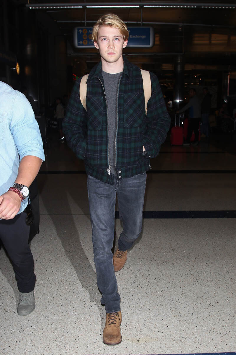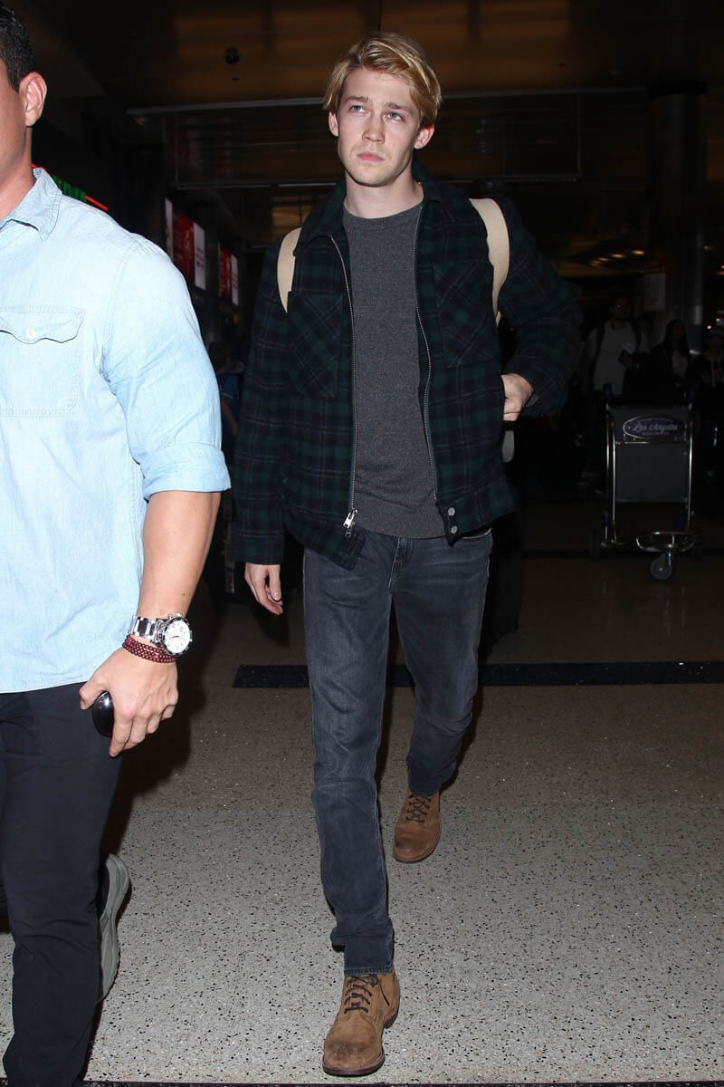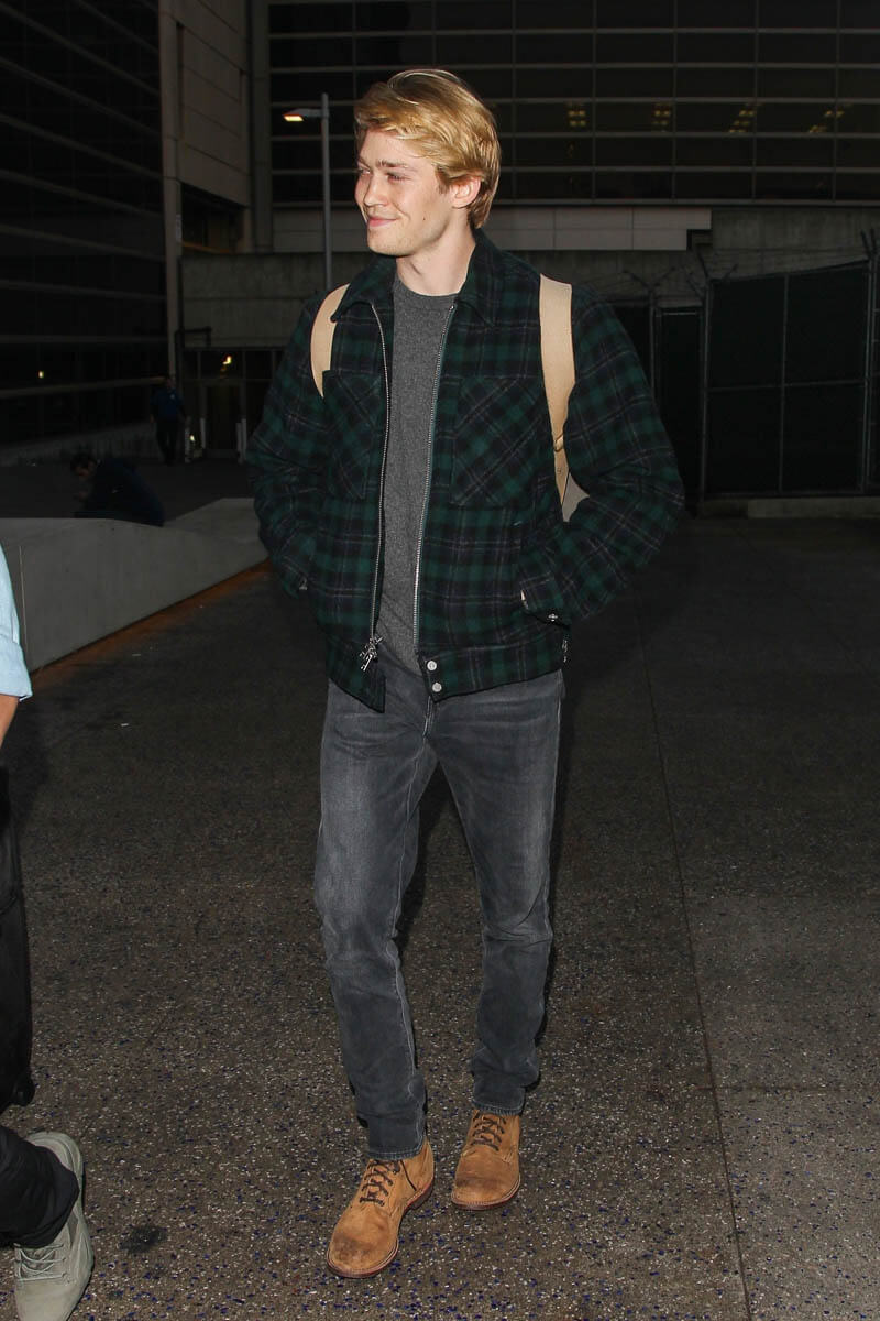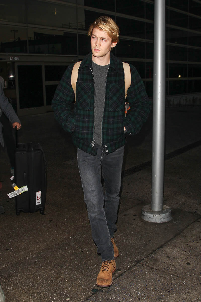 Taylor Swift and her family arrived in LA last week where they presumably spent Christmas. Joe Alwyn wasn’t with them and I posted at the time that it was looking likely that Joe was back in England with his family and would likely show up for New Year’s. Here he is arriving at LAX yesterday. Party at her house?
