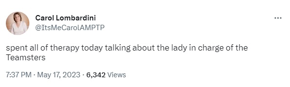 Absolutely OBSESSED with Lindsay Dougherty, the Hollywood Teamsters boss. Look, I know the Teamsters are complicated—they include skilled laborers AND cops—but Dougherty is crushing it as a labor leader in a strike era. All the productions shut down by the writers’ strike aren’t shut down because the writers didn’t show up to work, they’re shut down because Dougherty’s Teamster crews aren’t crossing the picket lines. The Teamsters, who make up drivers, casting directors, animal trainers/handlers, mechanics, among others, you know, the skilled workers who make sets run, aren’t on strike themselves, but they’re holding the line for the writers. Worker solidarity is beautiful, and so is Lindsay Dougherty’s fiery presence and “stepping on dicks” for the working class. (Vanity Fair)