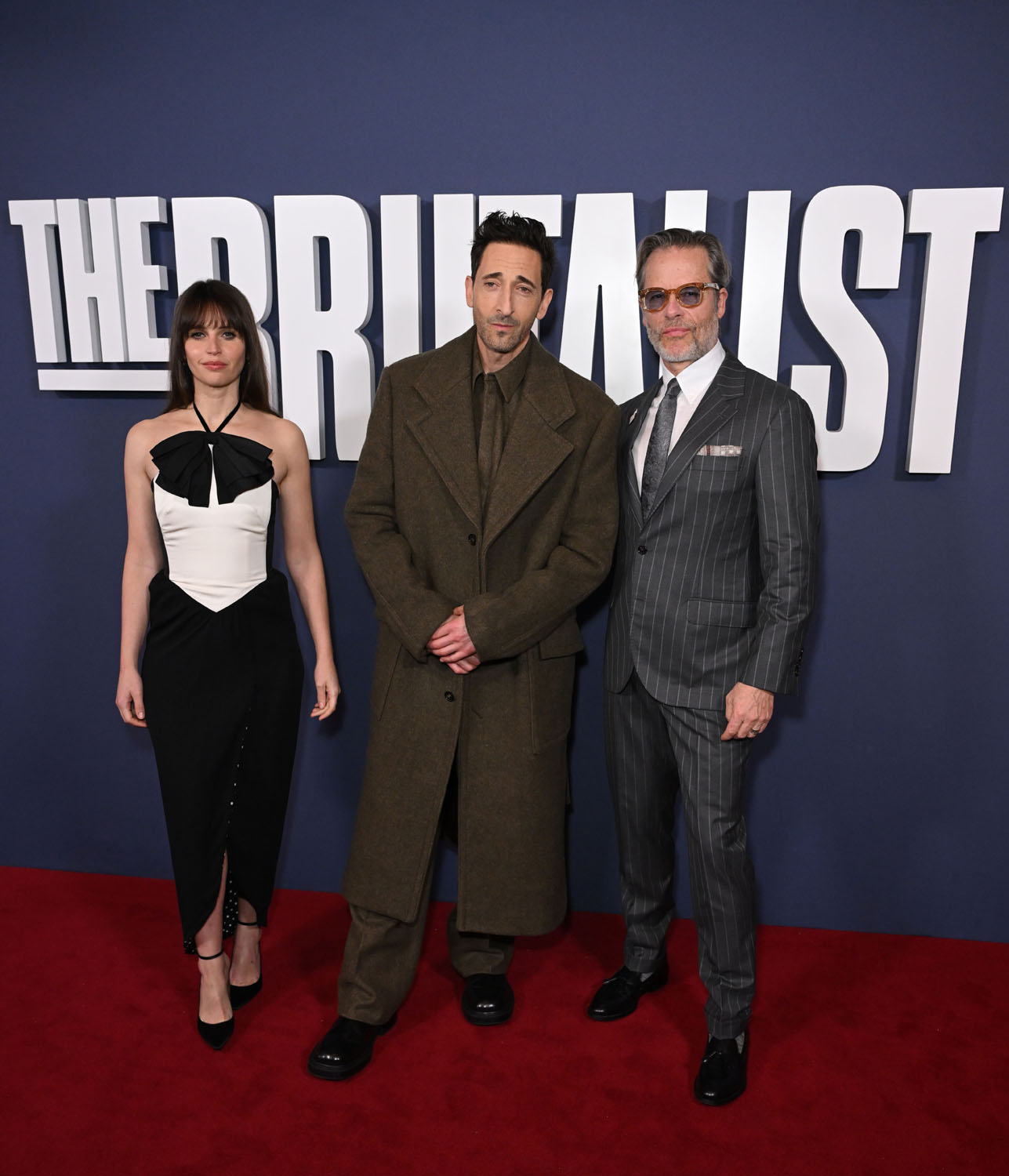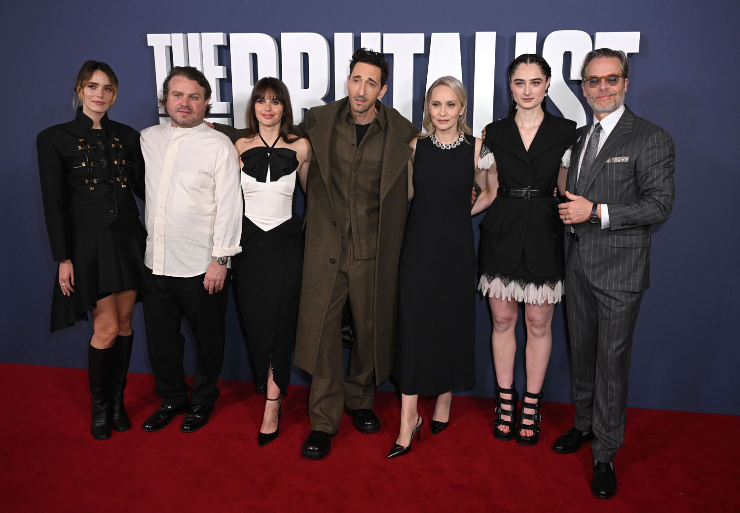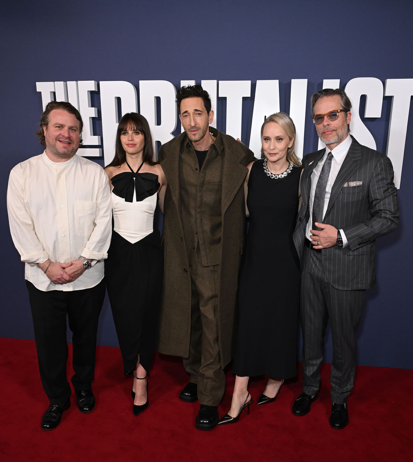 Adrien Brody was in London yesterday for the premiere of The Brutalist along with director Brady Corbet, co-writer Mona Fastvold, and co-stars Felicity Jones and Guy Pearce. Meanwhile Joe Alwyn, who’s also a member of the cast, and is from London, was in New York and made an appearance on Late Night with Seth Meyers.