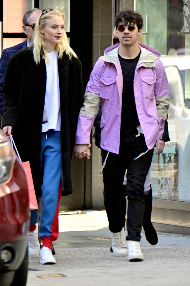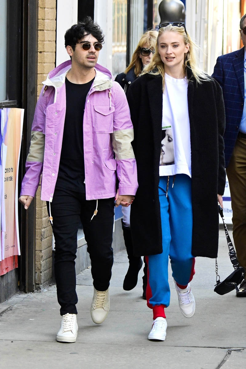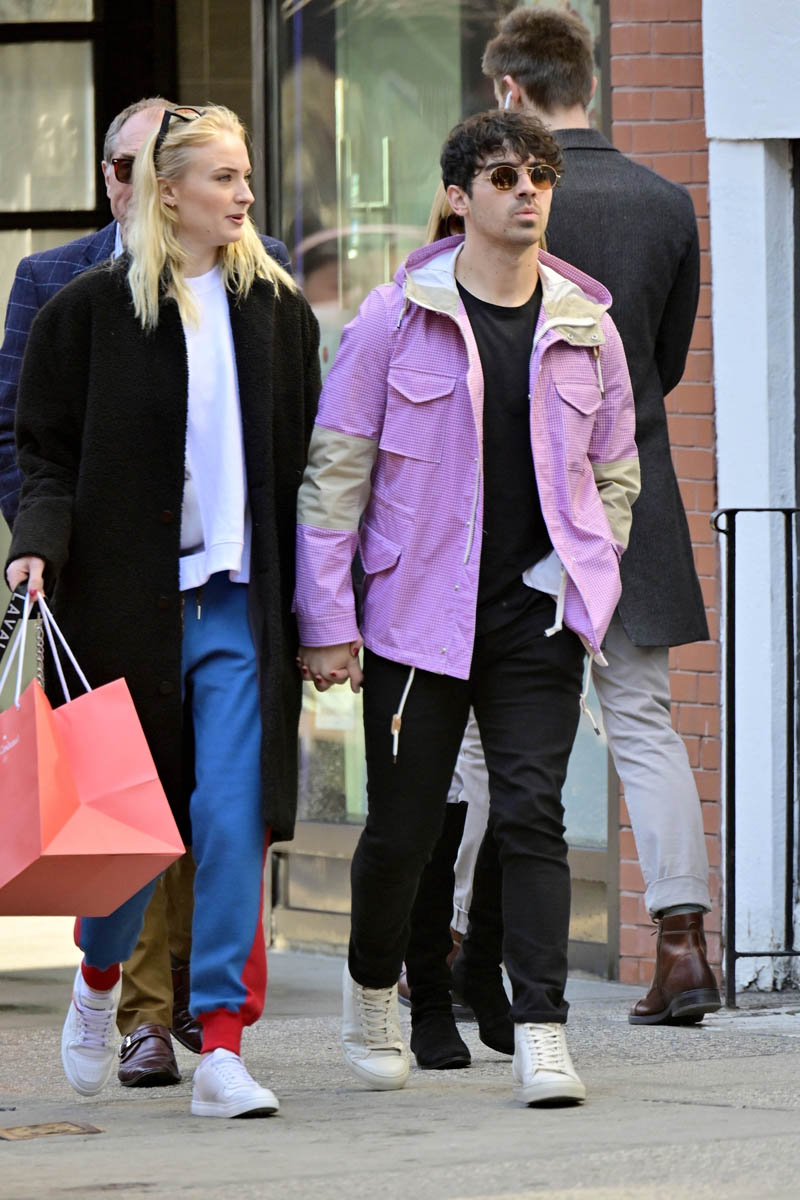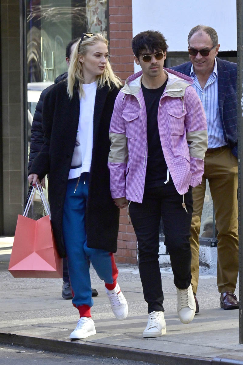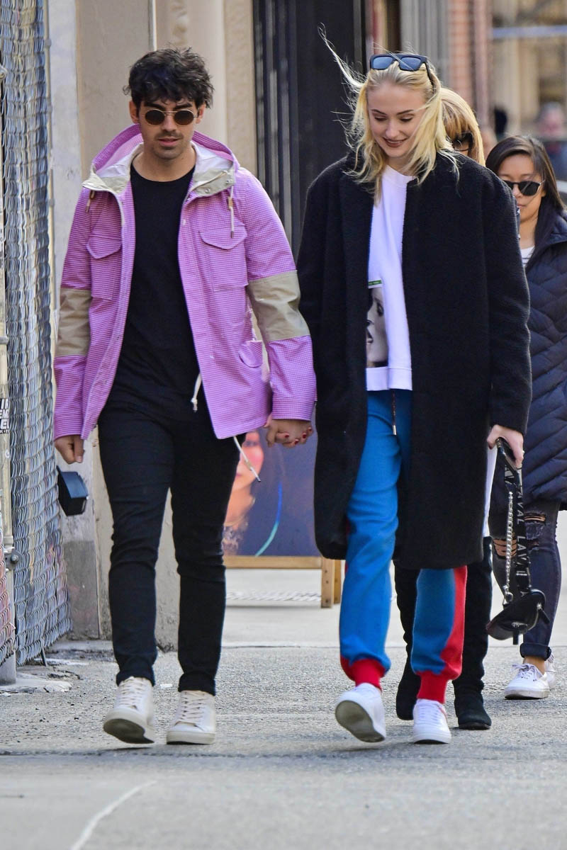 Attached - Joe Jonas out in New York today with Sophie Turner.