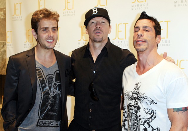 Three members last night – Donnie, Danny, and Joey in Vegas at JET. Rough, non? Like Tara Reid styles. Especially the bags underneath Joey’s eyes – almost as appalling as his shiny suit although nowhere near as entertaining as Danny’s guido-club-dude ensemble.