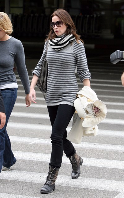 Emily Blunt and John Krasinski both photographed at LAX today arriving from Sundance. Inconveniently for us, they weren’t shot together. Boo.
