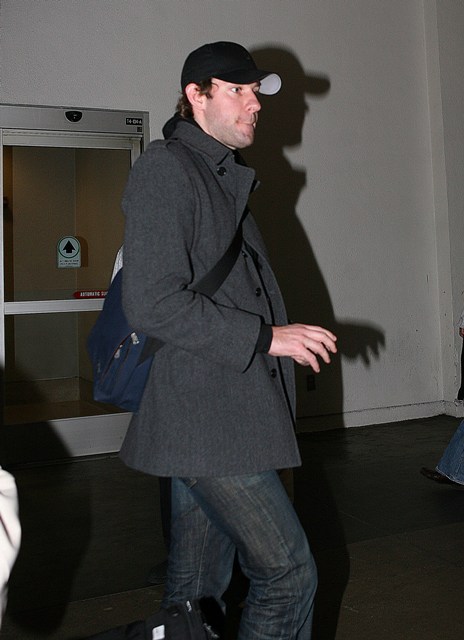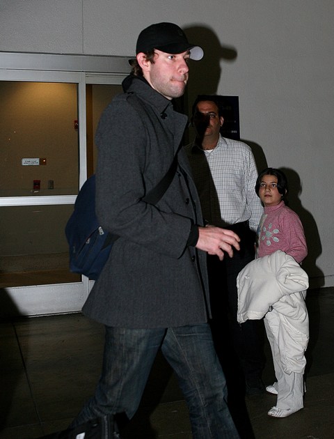 On the happier note, this is John being John going through an airport last week, trying to avoid the paps by pretending to be busy on his blackberry. Those shoes. Every time I see him he’s wearing those shoes. It’s what makes John Krasinski, non? He knows who he is.