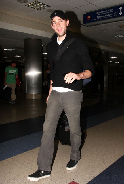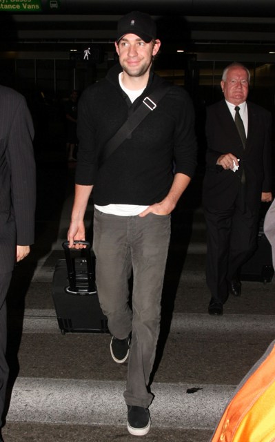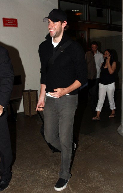 Dated August 30th, John Krasinski arriving back in LA after a few days with now fiancee Emily Blunt who’s there working on a new movie with Matt Damon. John last week was also apparently at Niagara Falls for a – SPOILER! – shoot re: The Office wedding.