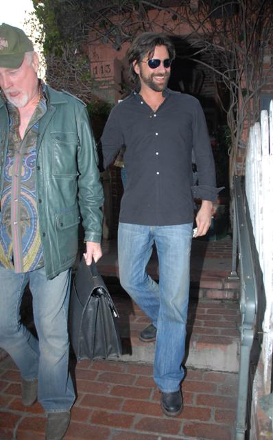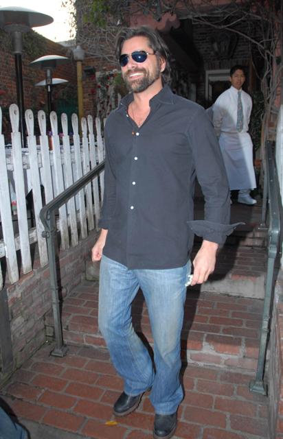 John Stamos has grown out a big bushy writer’s strike beard and decided to show it off at The Ivy yesterday. Hirsute or not, he’s a fine looking man, non? Handsome, amazing hair, amazing hair. The male hair counterpart to Jennifer Aniston.