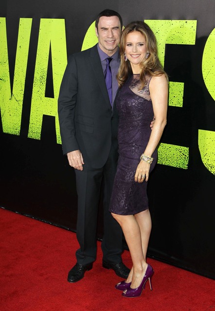 Thank you for explaining it to me the last few weeks. Many of you have emailed to confirm that, indeed, there are people out there, A LOT of people, who still think John Travolta is straight. That it would be impossible for him to be un-straight considering he has a beautiful wife and children. So when John and Kelly Preston show up at the premiere of Savages, nuzzling each other for the cameras, suggesting that they do have man and woman sex, it’s for the benefit of your parents.