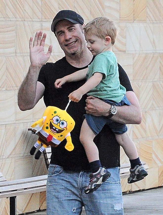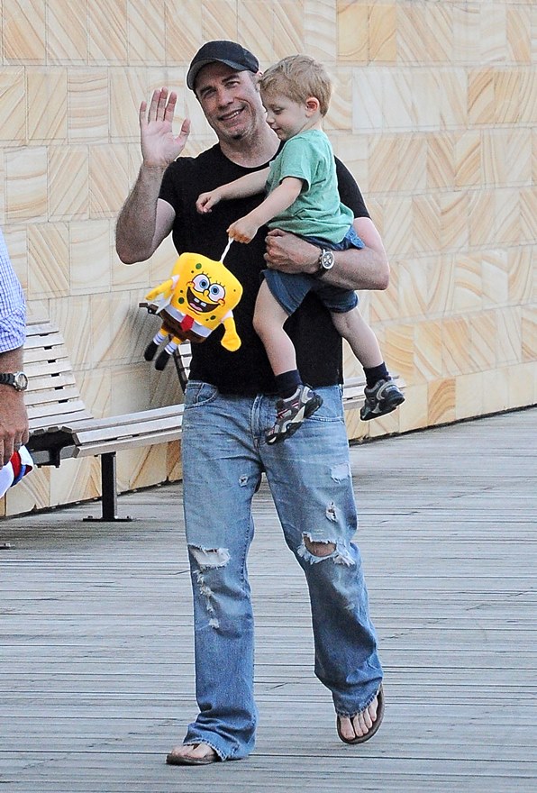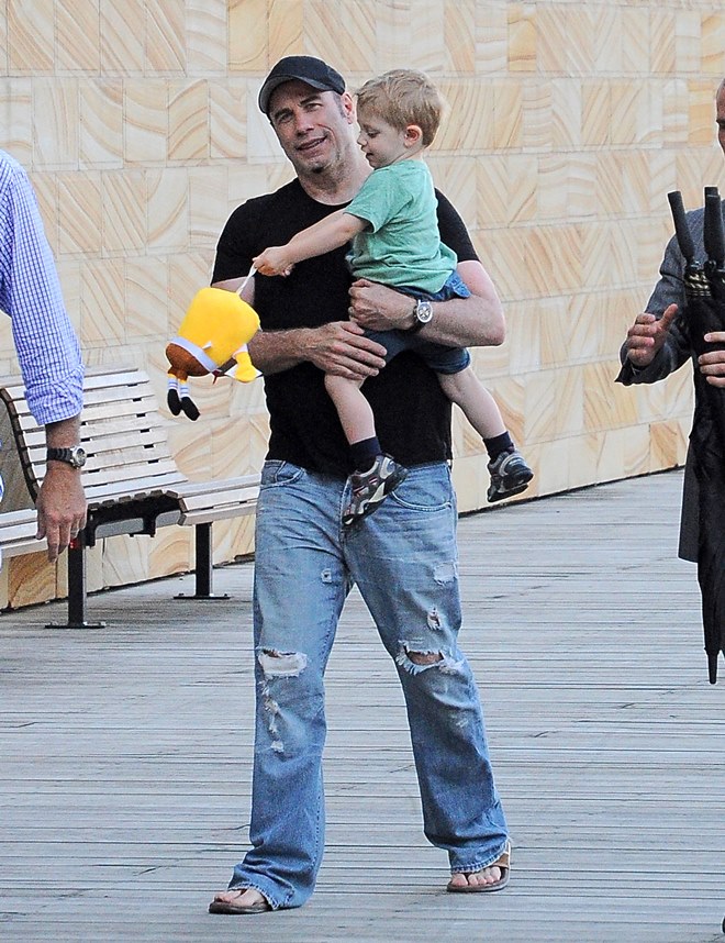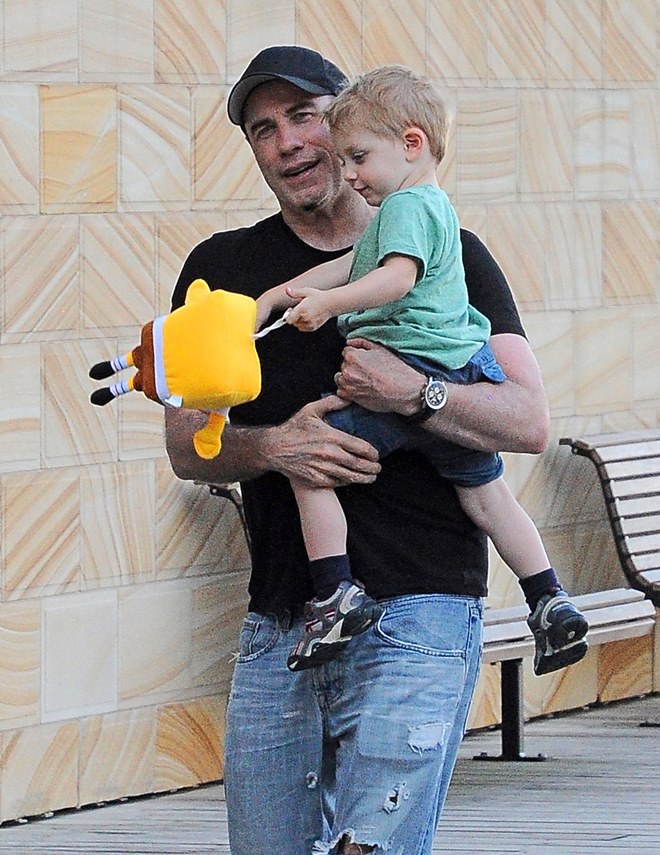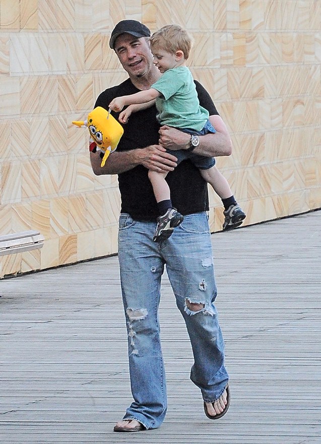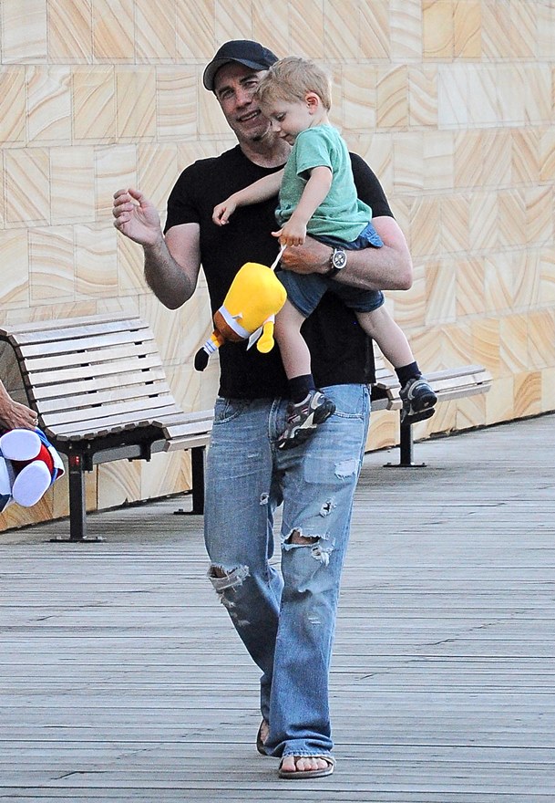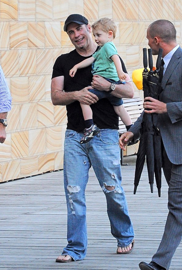 Also attached -- Travolta with son Benjamin walking around town before the event.