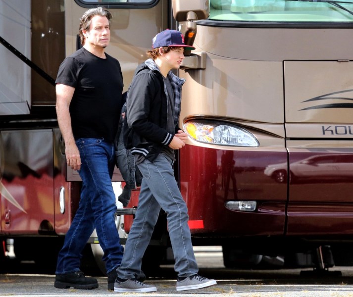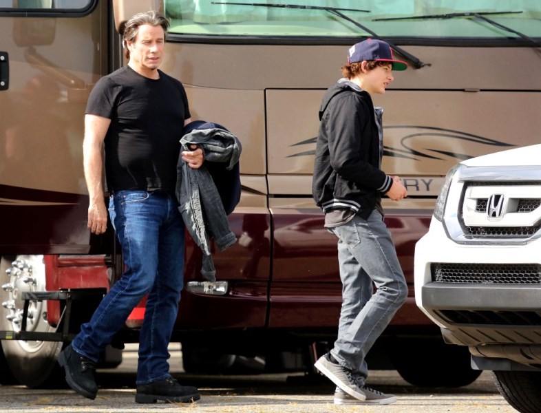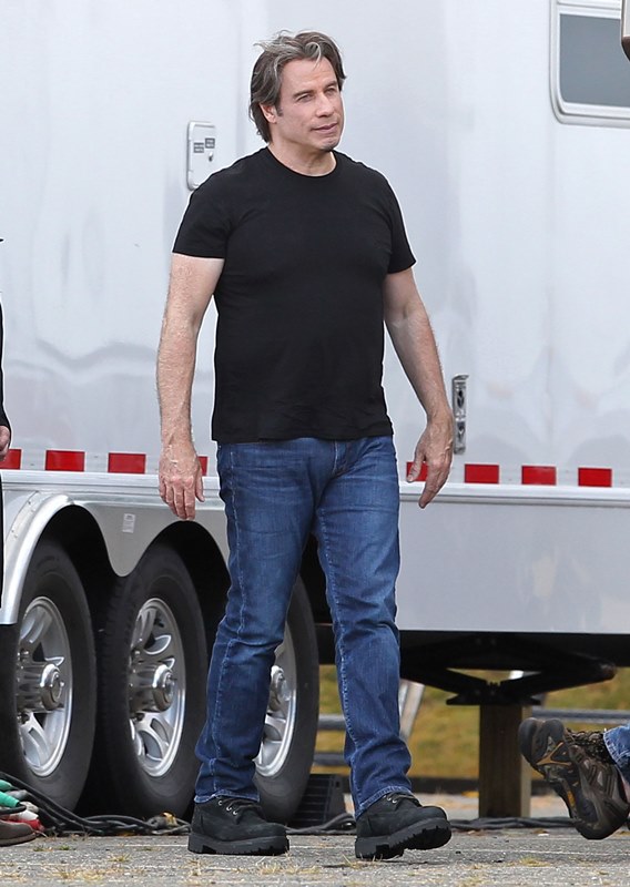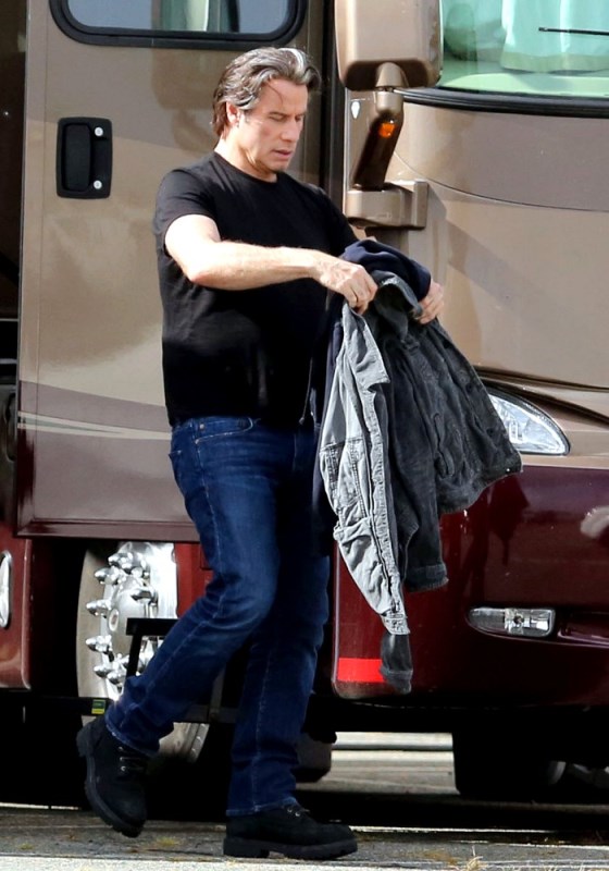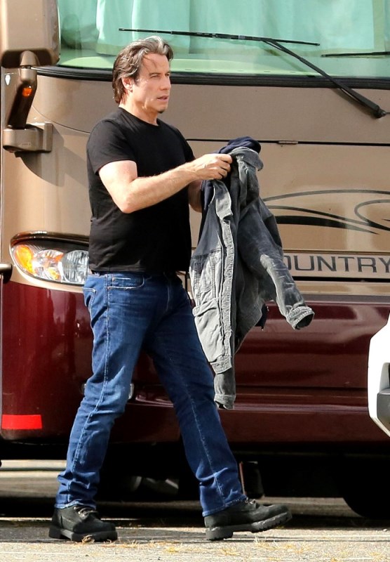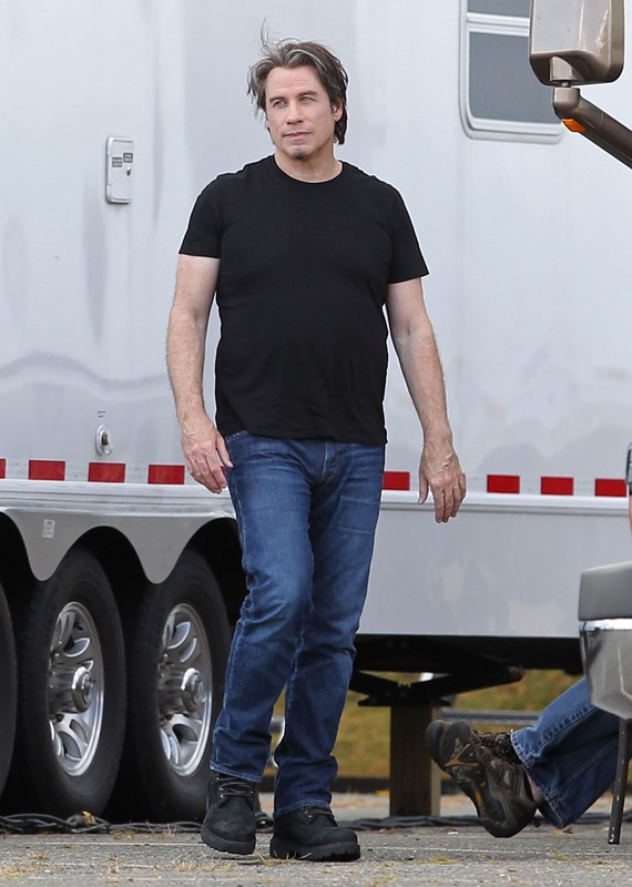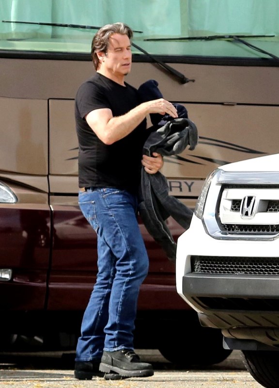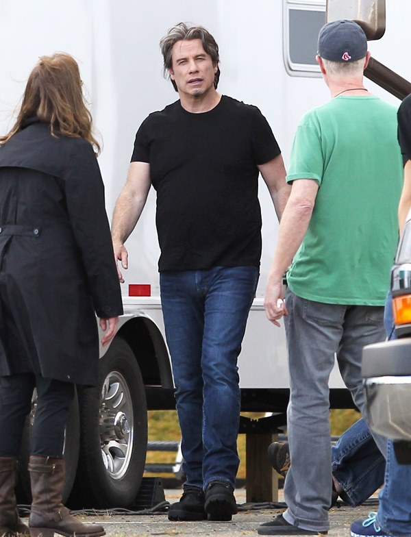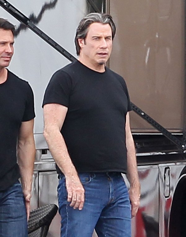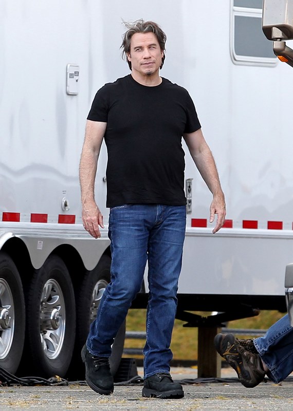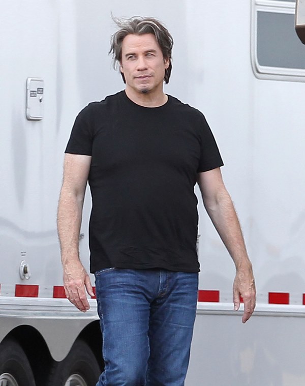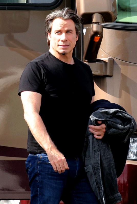 The original JT. Because in this business, Justin Timberlake can’t be the only one with those initials. Before he sang and danced, there was John Travolta who sang and danced. And now John Travolta is on the set of his new movie The Forger in Boston working a new head of thick hair. It’s streaked with grey, sure, but look at those waves, look at that texture. It’s almost better than Bradley Cooper. And it’s giving old JT some swagger, non?
