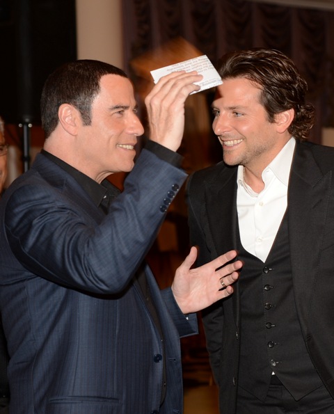 John Travolta was at the Hollywood Foreign Press Association event yesterday with his hair all dark and thickly colour-sprayed to the point where it now looks almost Spock-ish. Juxtapose that with Bradley Cooper, the reigning underwhelming Sexiest Man Alive, whose hair is his best feature and...