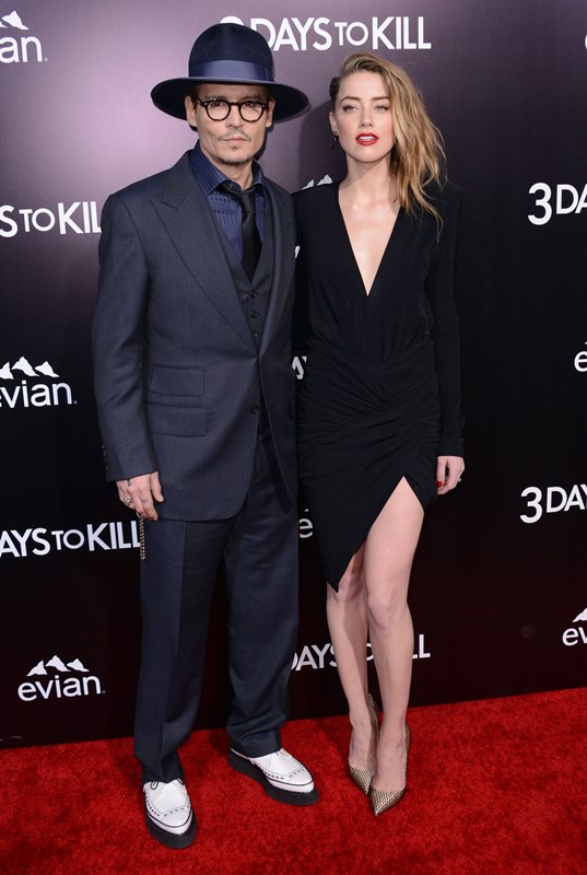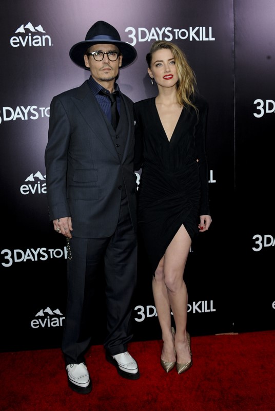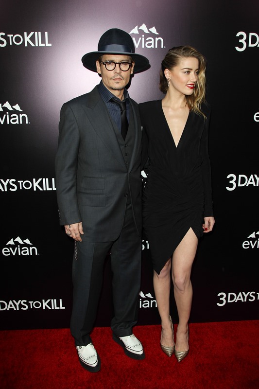 Johnny Depp’s fiancée is in a new movie with Kevin Costner called 3 Days To Kill. A gripping thriller, no doubt. The premiere was last night in LA and they walked the carpet together hand in hand and there was some kissing and nuzzling and this is supposed to make you want to go see your first ever Amber Heard movie.