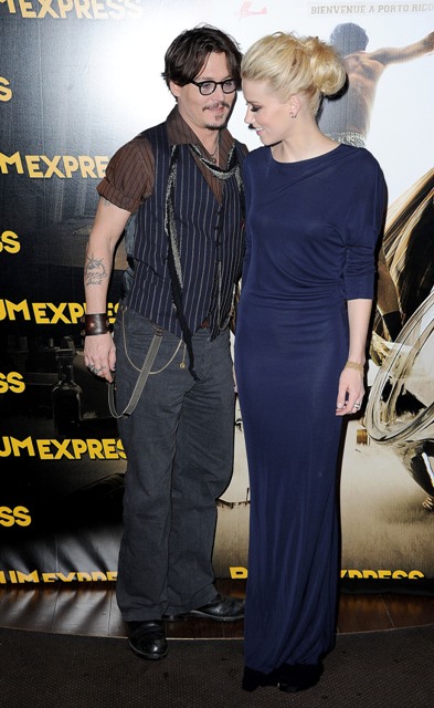 According to Page Six, Johnny Depp and Amber Heard (who supposedly has short brown hair now) were at a club together on Monday night. They were “flirty” and sat close together by themselves on a patio that had been blocked off just for them. Which... picture that: there’s one of the most famous actors in the world, nuzzling his girl in a roped off private section of a Hollywood club while everyone else just... wanders around observing them? Like a museum?