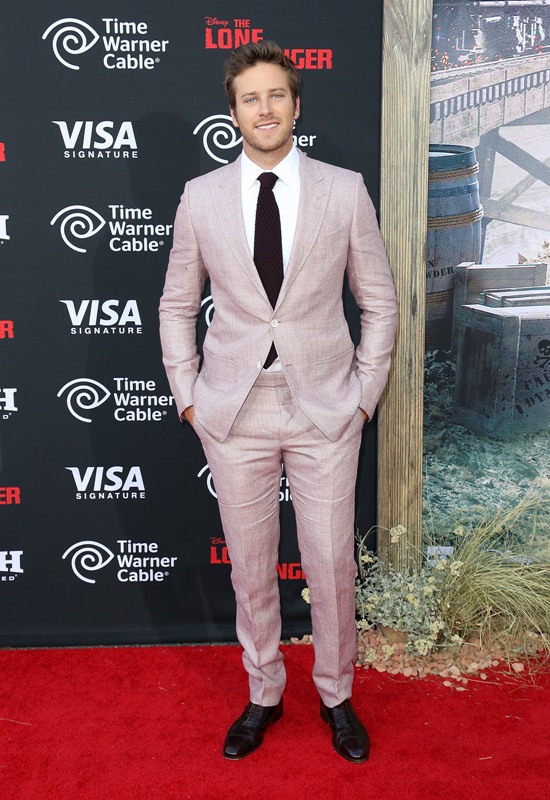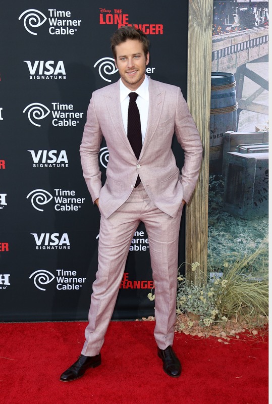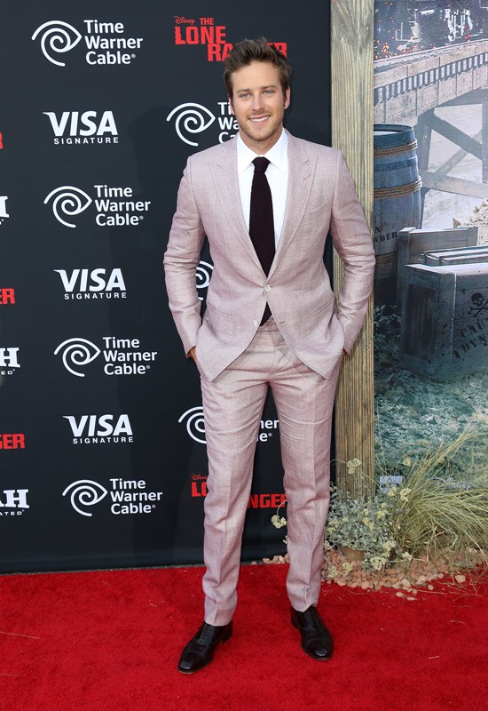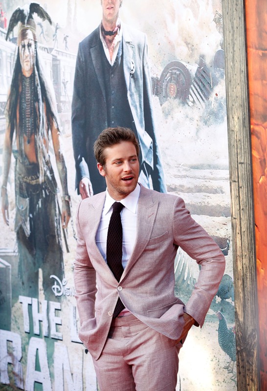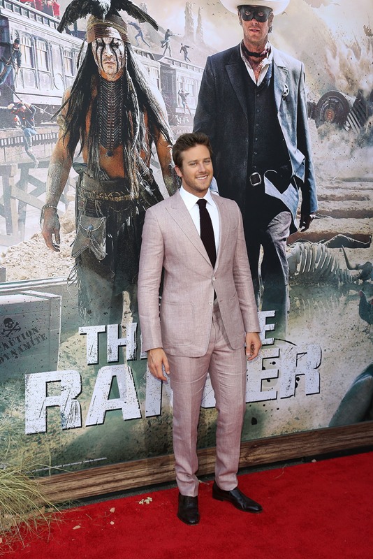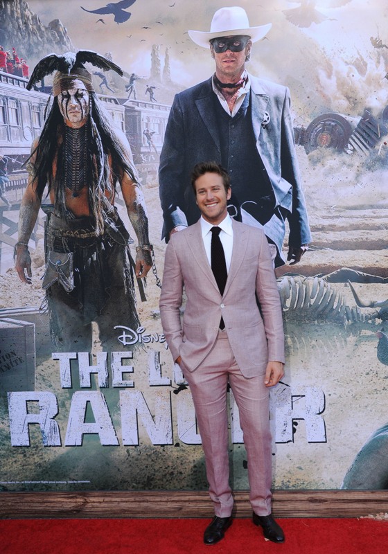 Here he is, well adorned as usual, but amazingly light on scarves, alongside Armie Hammer. It was a mega production. The red carpet was apparently 1500 ft long. 3000 fans were invited to scream at the stars who dutifully spent a lot of time signing autographs and posing for photos. So it’s not just a movie, you see. It’s a proper business – and if it opens big on July 3, it’ll get a roller coaster in addition to a sequel.