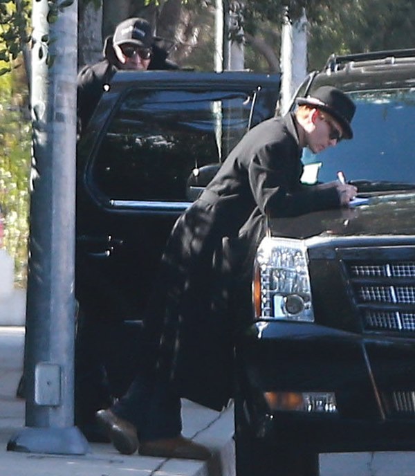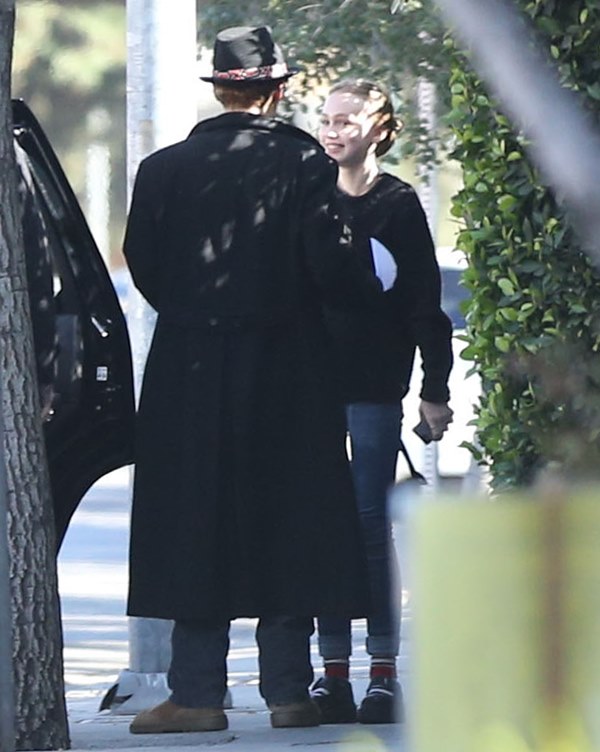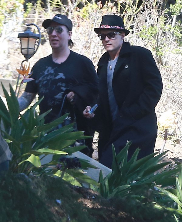 Johnny Depp and his best friend Marilyn Manson were photographed in LA together earlier this week. They dropped off Johnny’s daughter Lily Rose at school where Johnny signed what looked like a permission form for Lily Rose on the hood of the SUV before heading back to Manson’s to play guitars or something. Paps are noting that Johnny had a pipe in his hand. My cockeyes can’t make out anything for sh-t but I wonder if it’s not a vaporiser. They eliminate the smell and take away the throat scorch.