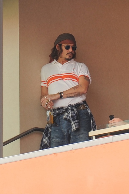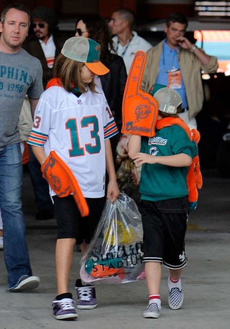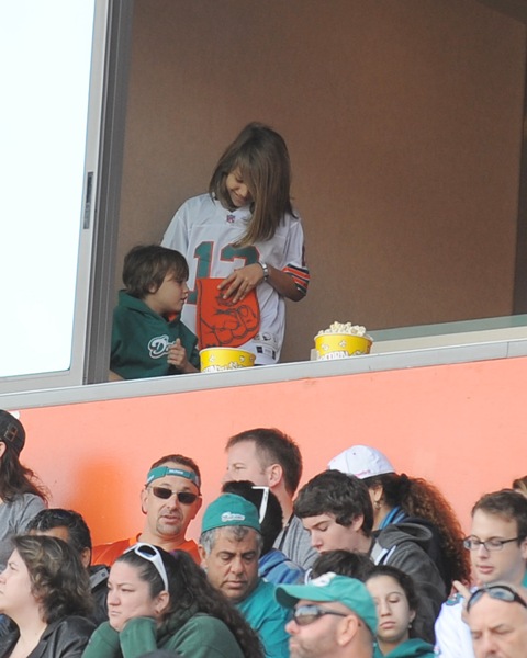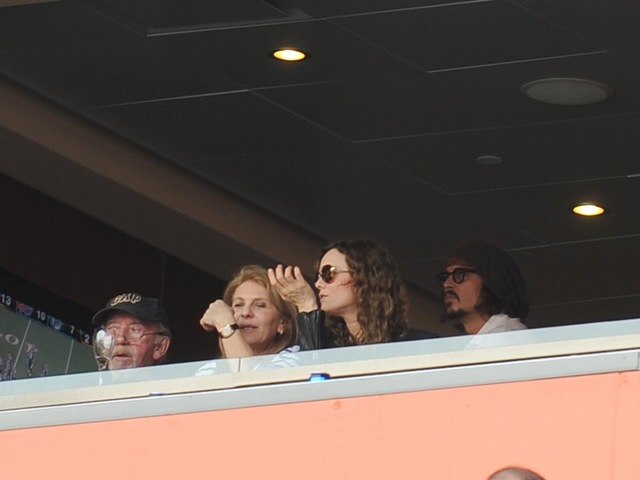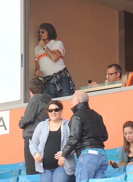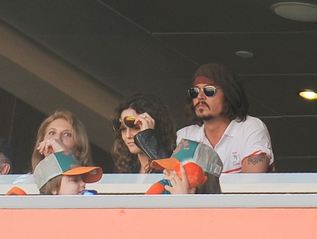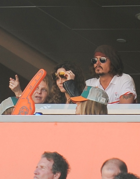 Last week Star Magazine accused Johnny Depp of cheating on Vanessa Paradis with some 19 year old trick on the set of Pirates of the Caribbean 4. This weekend he was shot in Miami, taking his kid to the Justin Bieber concert (Bieber shouted him out during the show) and yesterday with V and the children at the Dolphins game vs the Bills. Coincidence or conspiracy?