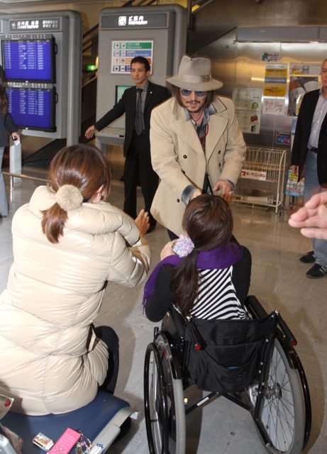 As for Johnny in Japan, he was very gracious, took time for photos, and paid extra special attention to a girl in a wheelchair, before heading off to prepare for promotional events for Public Enemies.