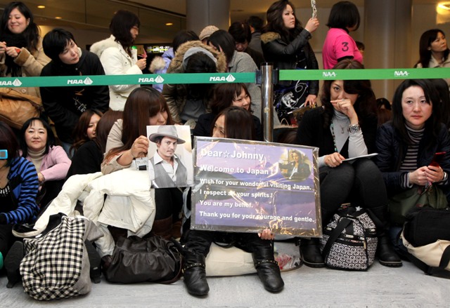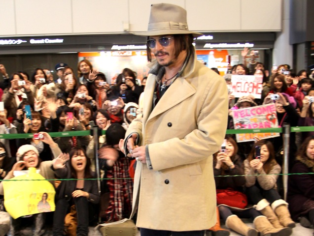 Johnny Depp arrived in Tokyo today where hundreds of fans were waiting for him at the airport. They had signs and photos and some were moved to tears. Mostly the grown women. This is what I have a hard time understanding. Am not a particularly weepy person to begin with but still, I worship Meryl Streep and there was no crying involved when I heard her speak at the ROM. Maybe it’s because I’m Chinese.