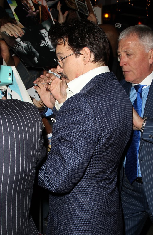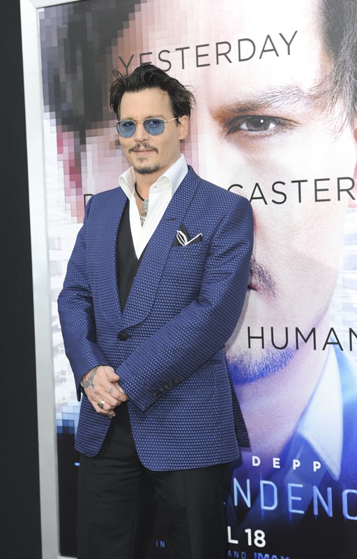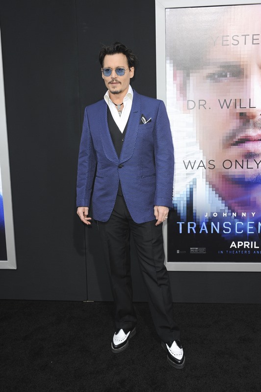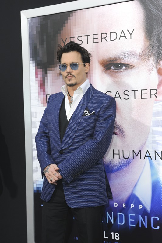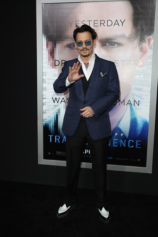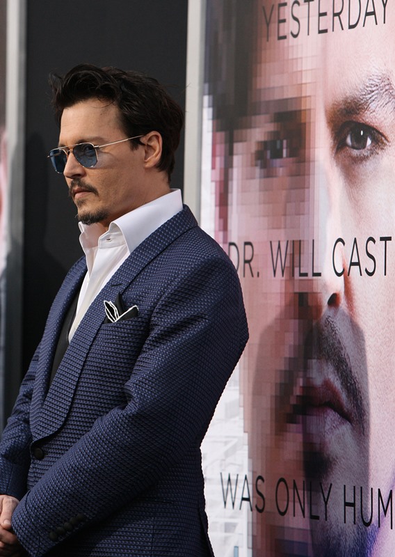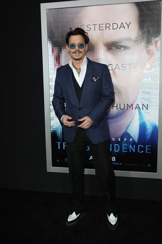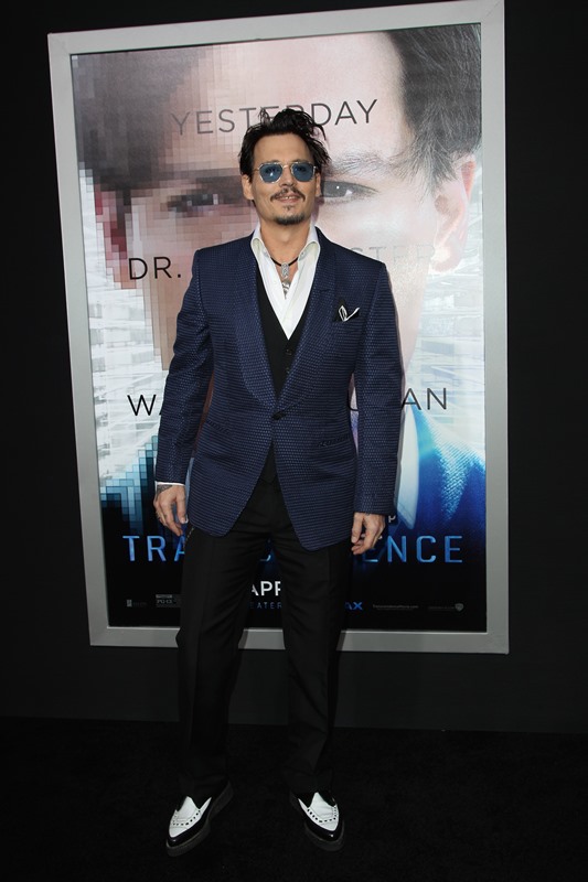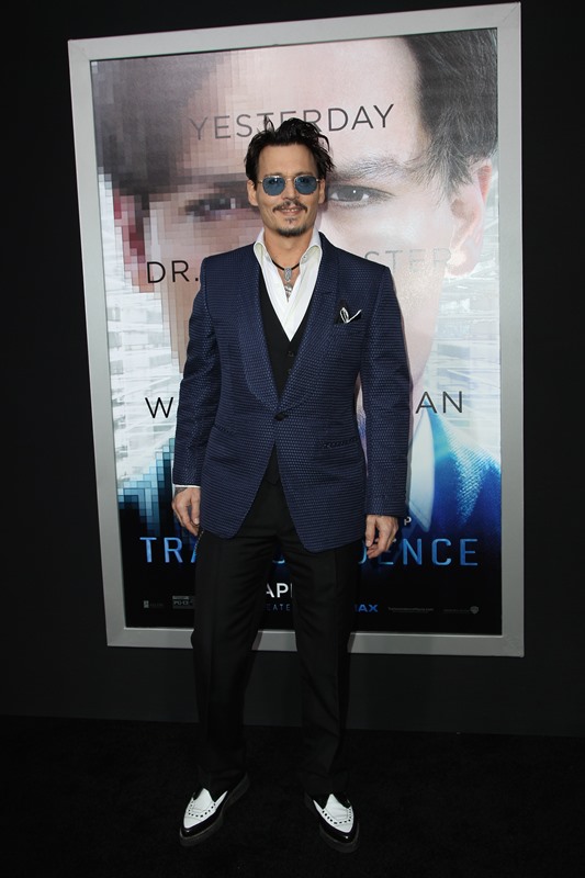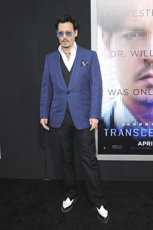 And here he is last night at the Transcendence premiere in Hollywood, no fiancée. She’s working in New York. Am shocked. Johnny Depp couldn’t get Amber Heard a day off? What’s the f-cking point of being engaged to him if she can’t get a work pass to walk a red carpet? Interesting too because lately he always manages to be there to walks hers. Then again, her movies need more help than his do.