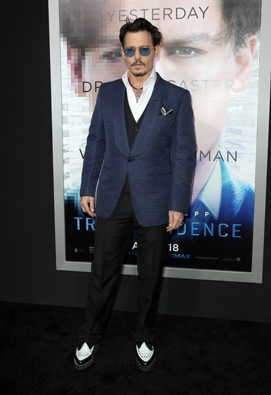 And here he is last night at the Transcendence premiere in Hollywood, no fiancée. She’s working in New York. Am shocked. Johnny Depp couldn’t get Amber Heard a day off? What’s the f-cking point of being engaged to him if she can’t get a work pass to walk a red carpet? Interesting too because lately he always manages to be there to walks hers. Then again, her movies need more help than his do.