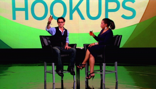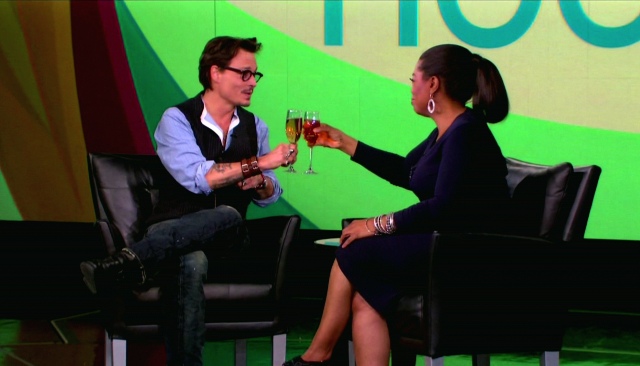 And thanks God. For much too long, especially with the Jolie in The Tourist, there was a layer of something sitting on his beautiful face, and it was heartbreaking, and frightening, to think that Johnny Depp might actually be losing his looks. Or f-cking with them.