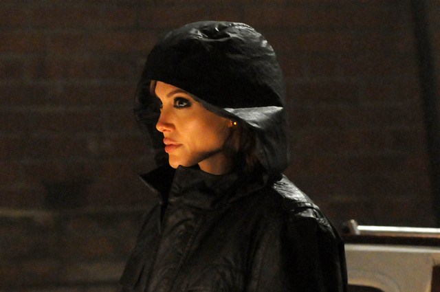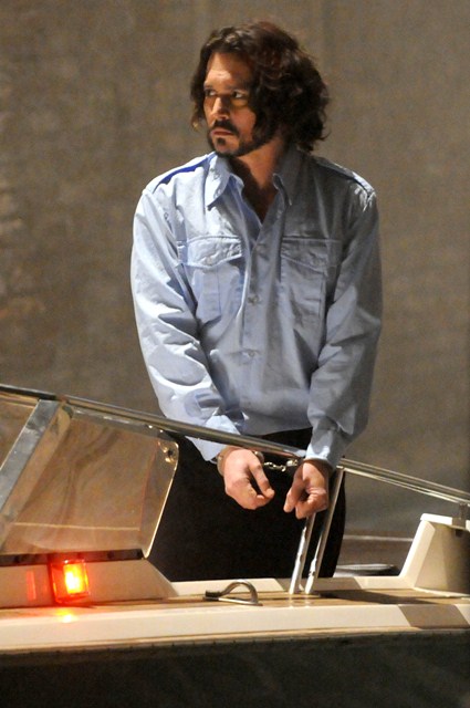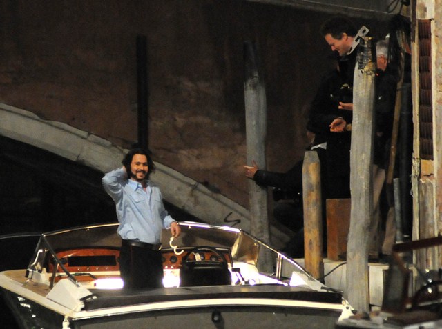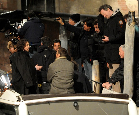 Johnny Depp and Angelina Jolie continue to shoot their new thriller The Tourist in Italy. This is a scene in which Depp appears to be handcuffed to a boat while a hooded, mysterious, and scheming Jolie watches nearby. An insider tells In Touch/Life & Style/Star/OK Magazine that once Angelina saw Johnny bonded to the boat, her wild sexual appetite was reignited. Angelina and Brad have not been intimate in a long time but finally Johnny stoked something deep inside of her, and she immediately remarked to an assistant that she found the image too distracting. She kept flubbing her lines the rest of the night.