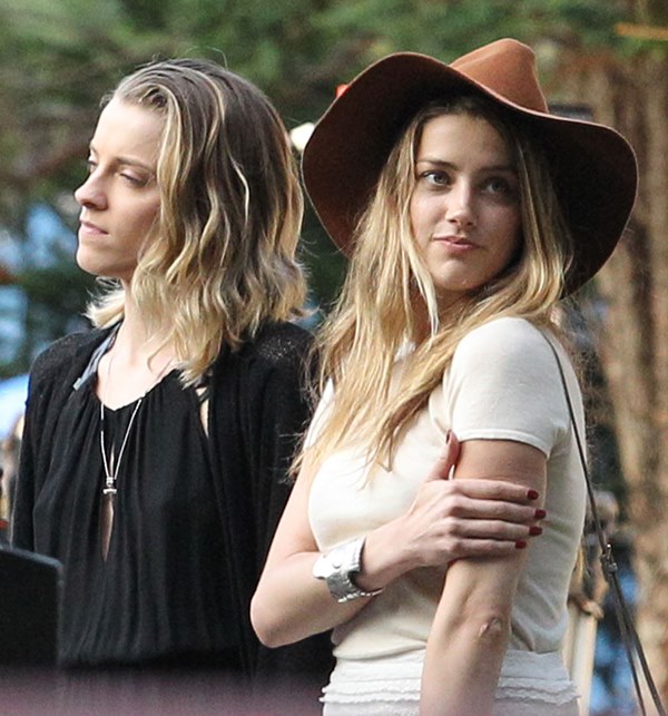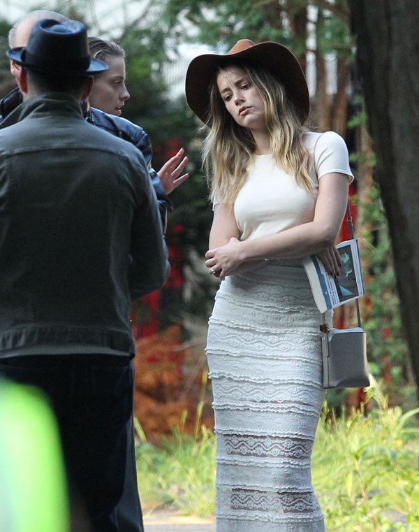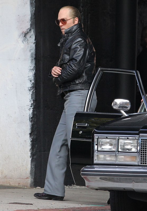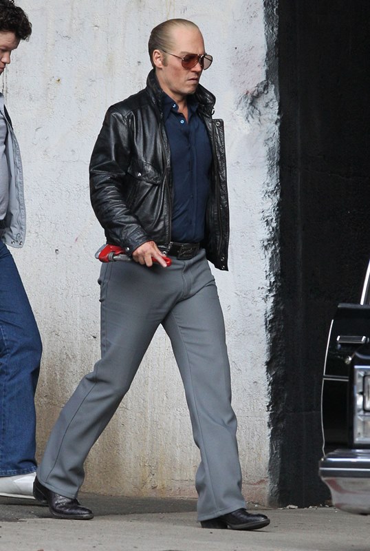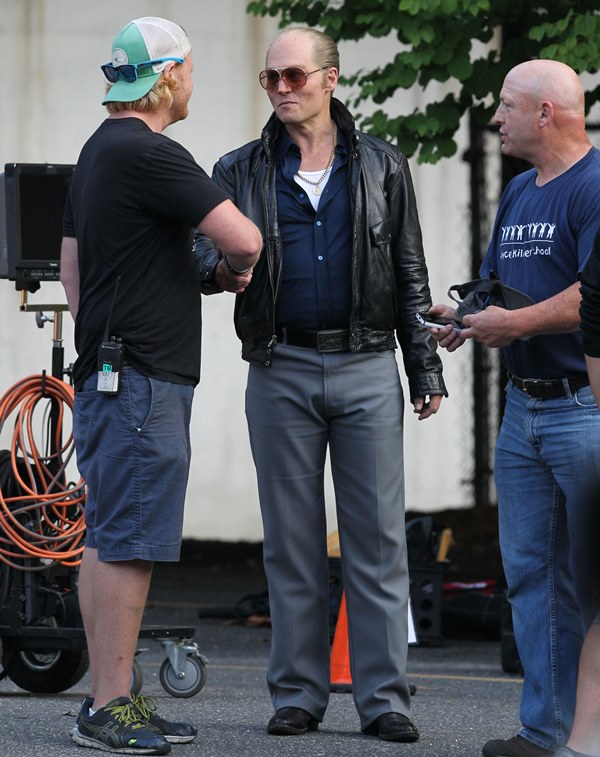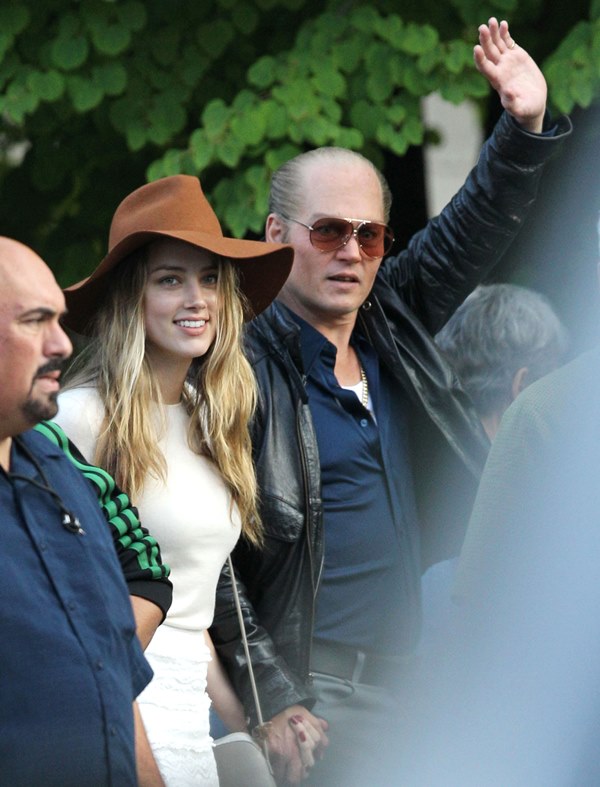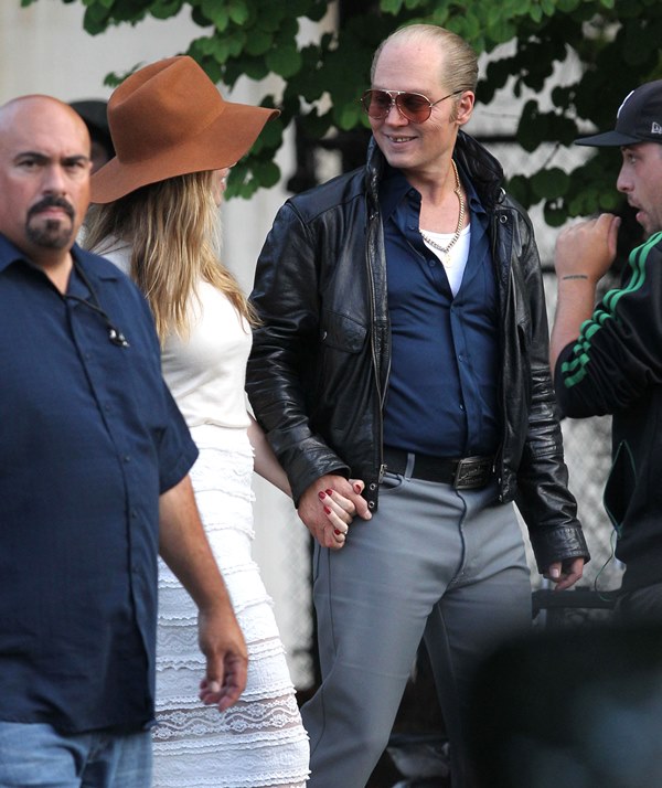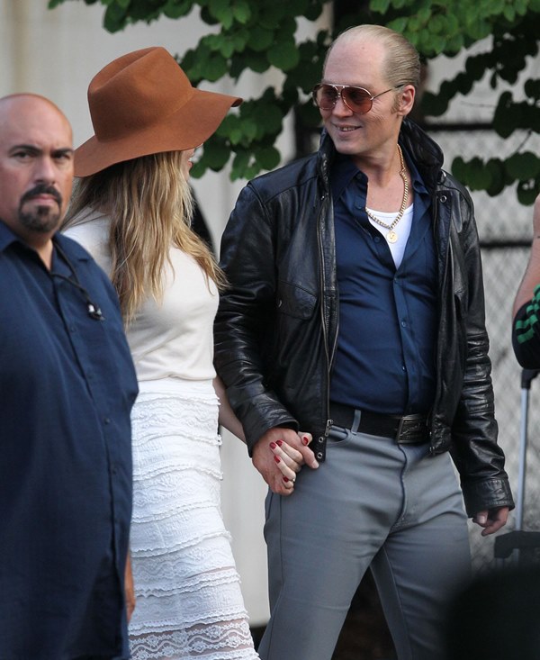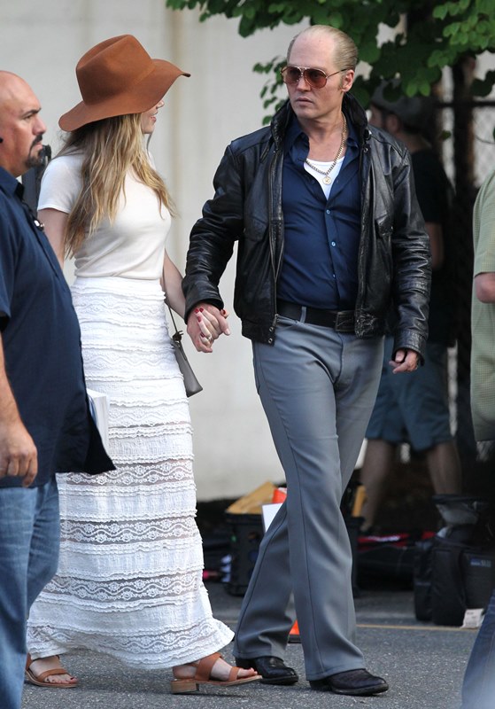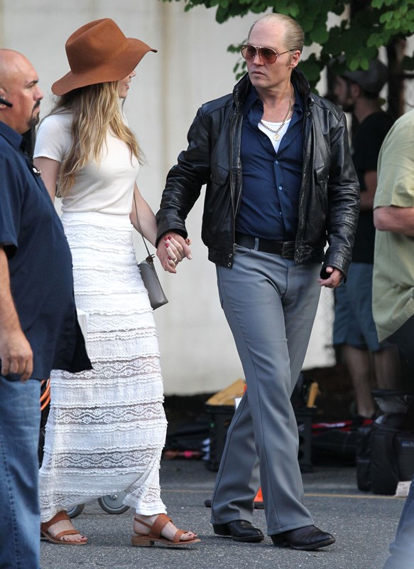 Attached – Johnny Depp with Amber Heard on the Black Mass set earlier this week.