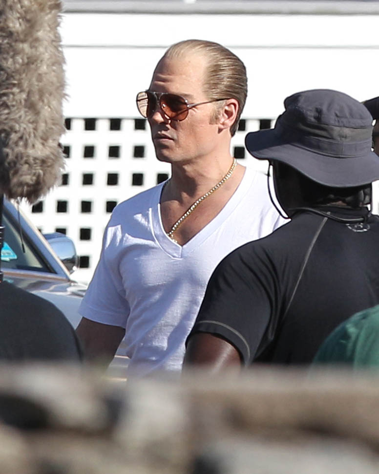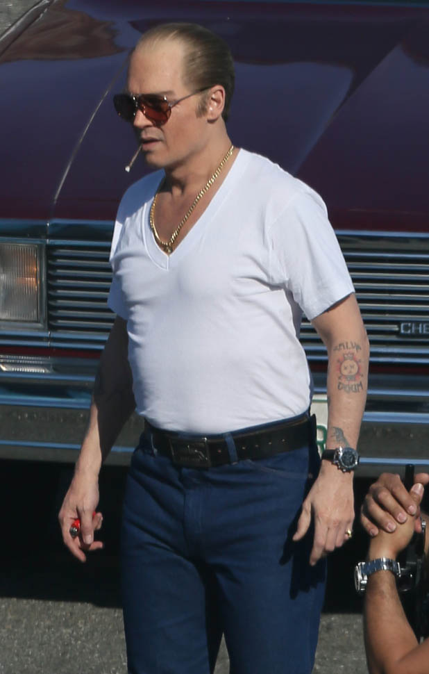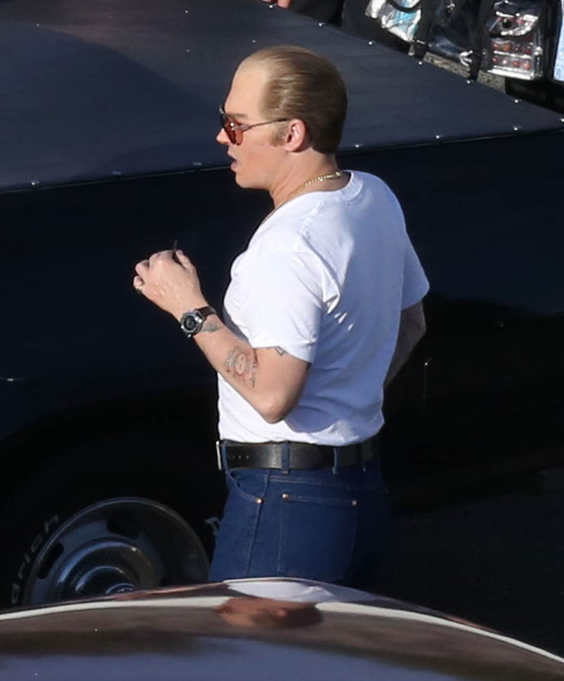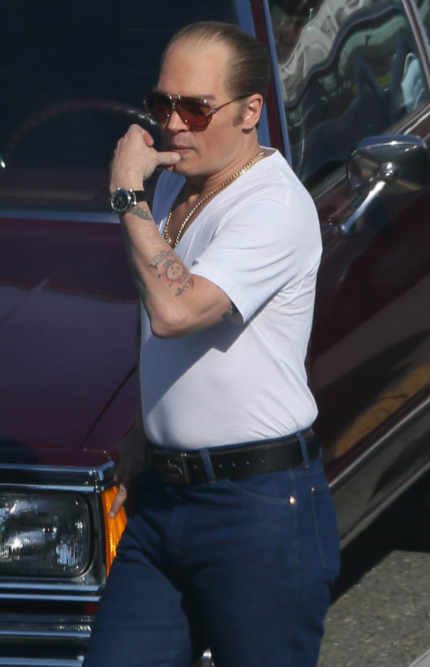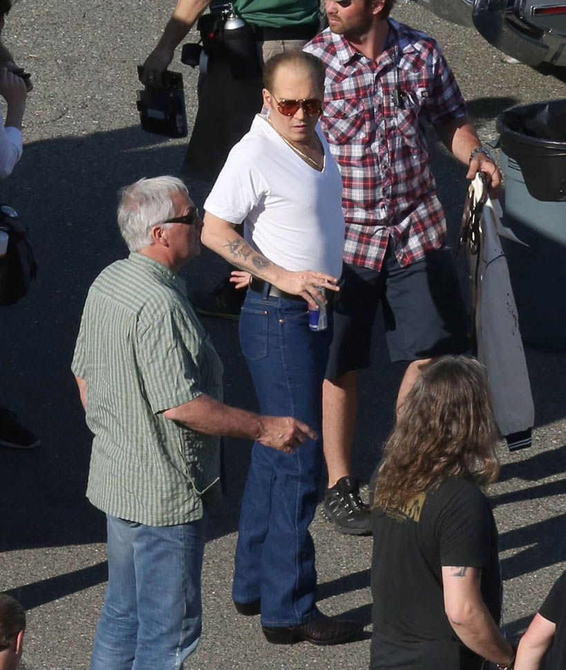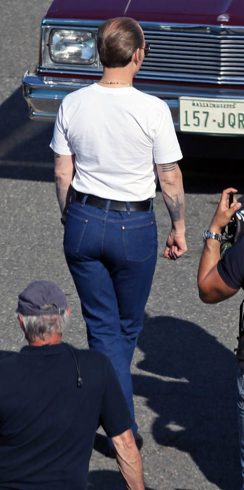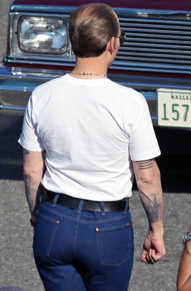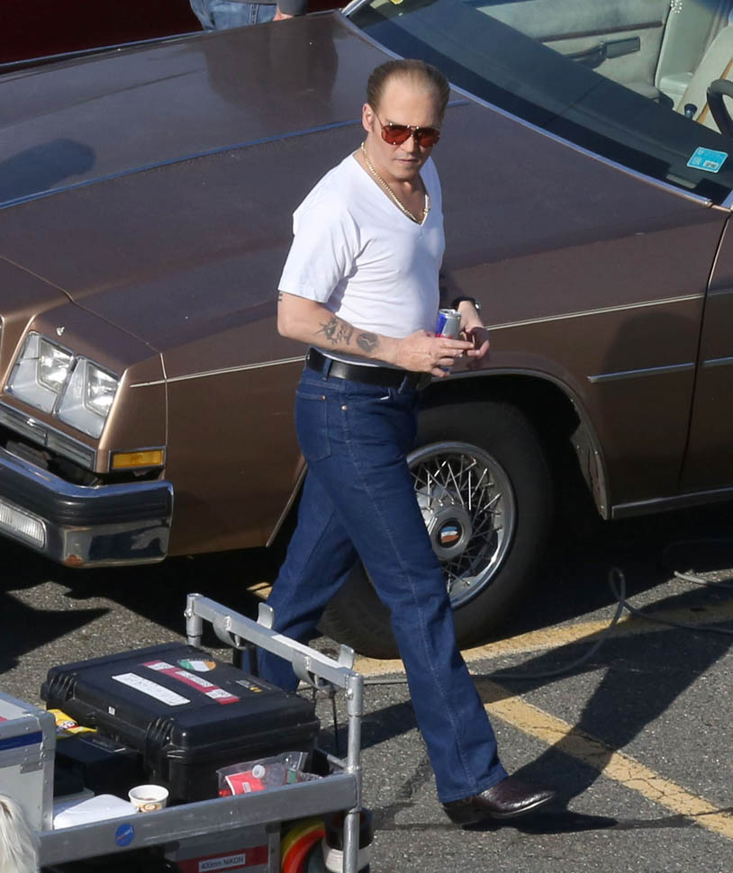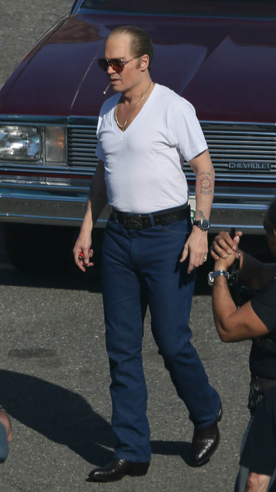 Sure. He’s in costume for the Whitey Bulger movie. And he’s probably got padding underneath those jeans, the most hideous man jeans we’ve seen, maybe ever. And yeah, ok, it’s not fair to judge on that criteria.