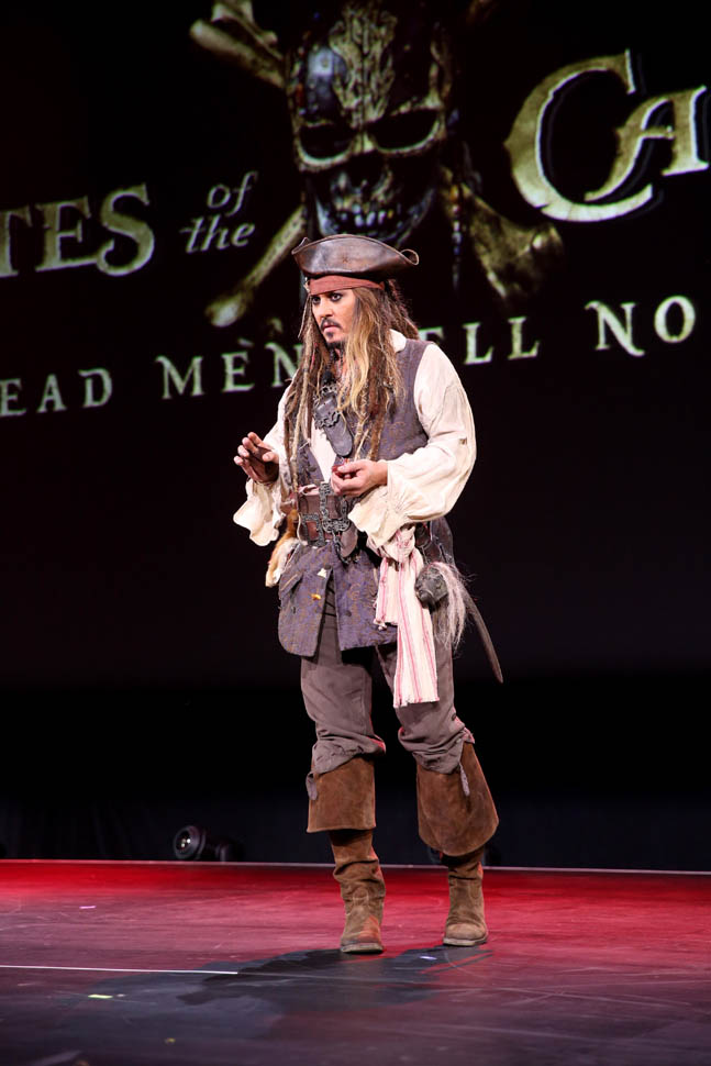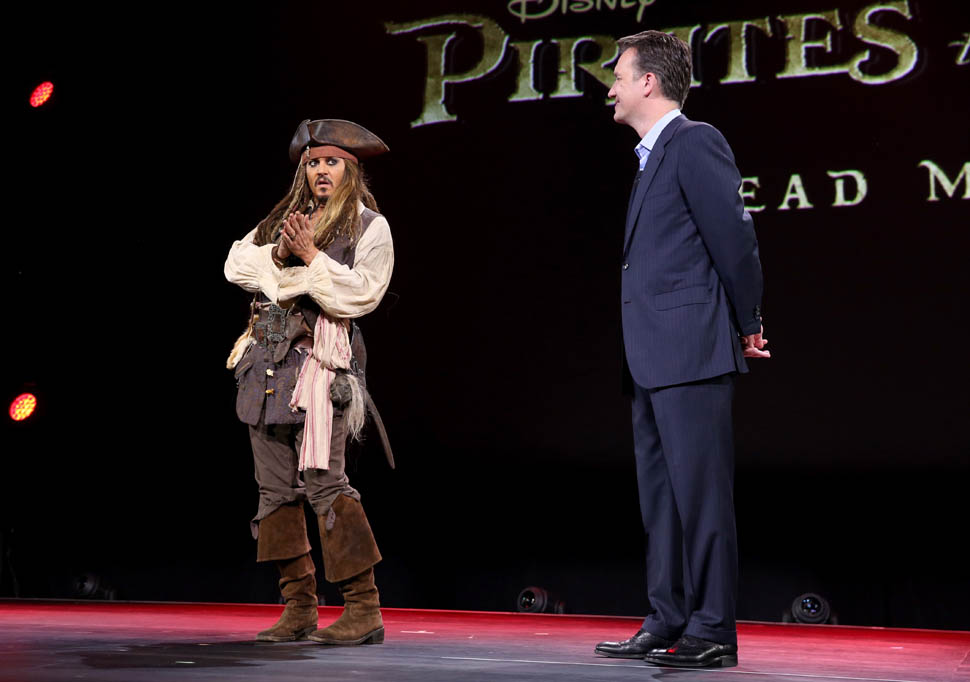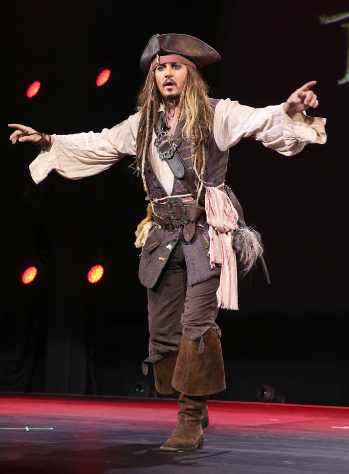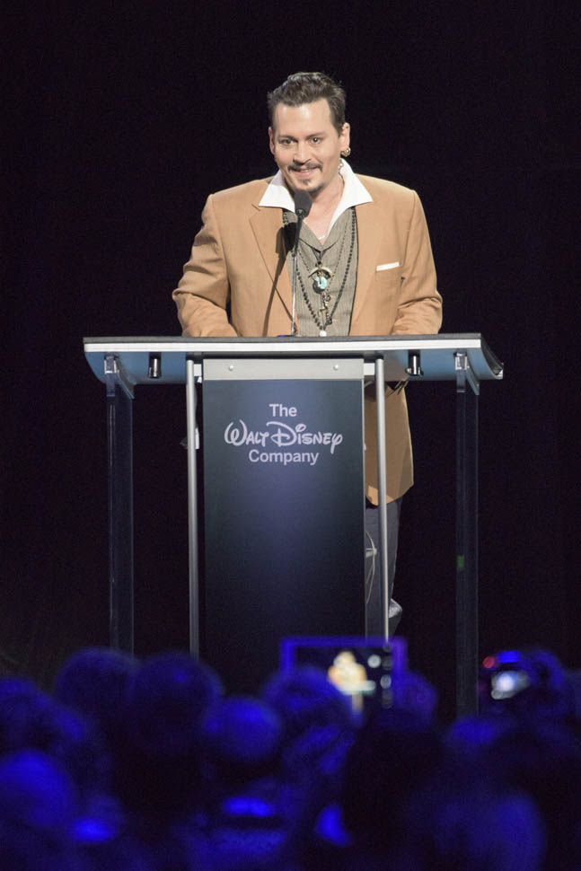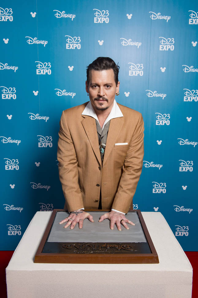 Johnny Depp showed up at Disney’s D23 this weekend to promote Pirates 5. On Friday he wore regular clothes, and by regular clothes, I mean a shirt and a vest and some necklaces – but not too many – and a jacket on top and, to me, he’s starting to look like Walt Disney. I can’t look too long at his face. It’s too disappointing.