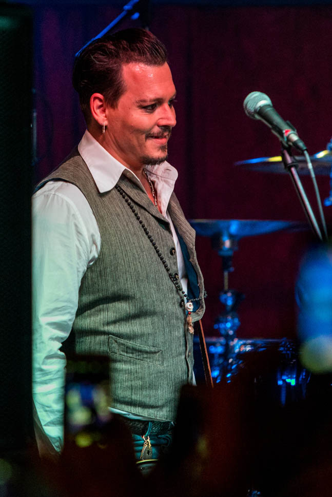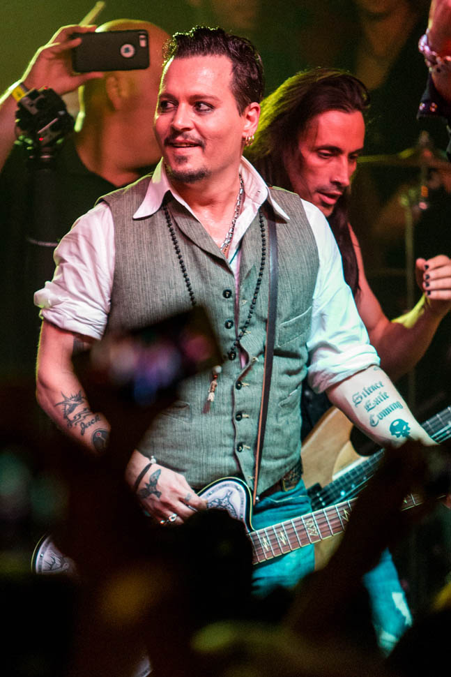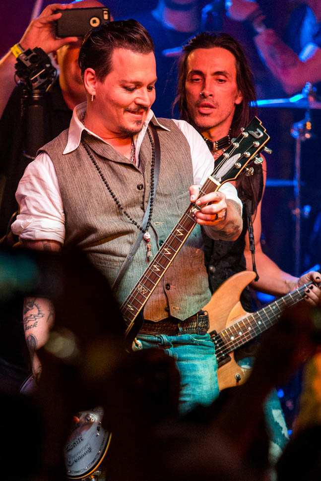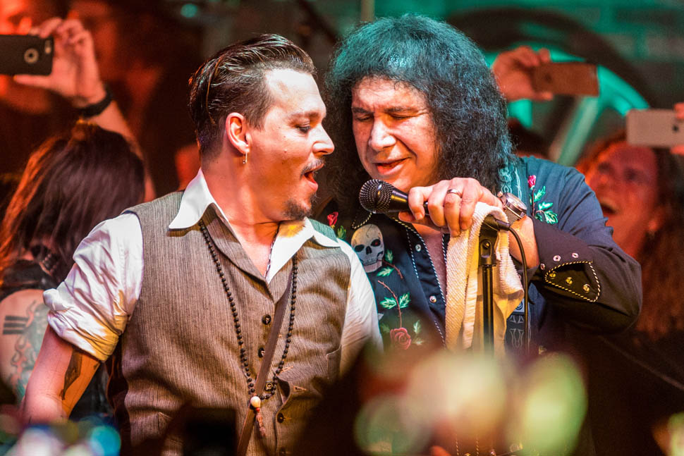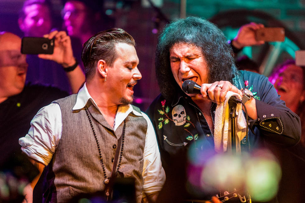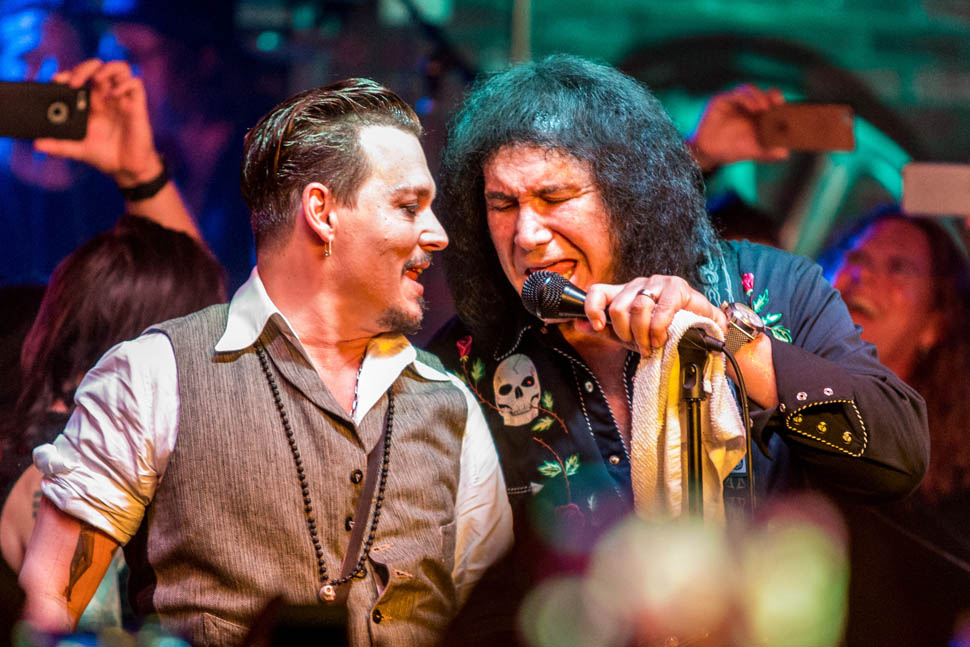 Last night Johnny picked up his guitar and performed at a charity concert with Gene Simmons in LA. If you have to stand next to Gene Simmons to look good, there’s a problem.