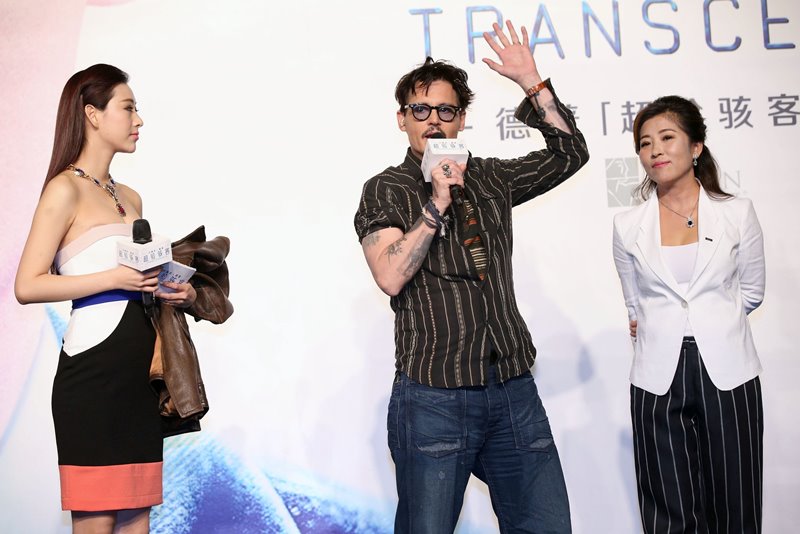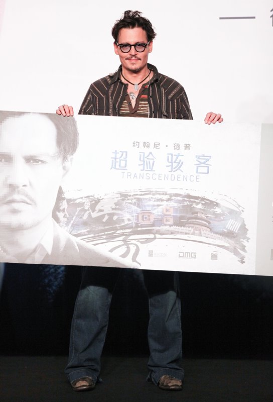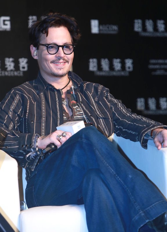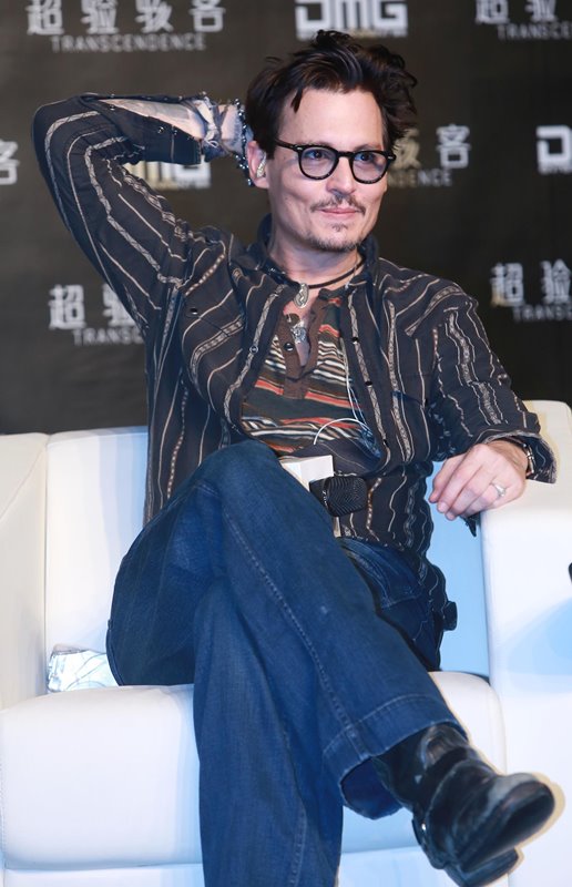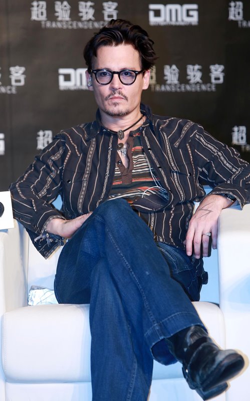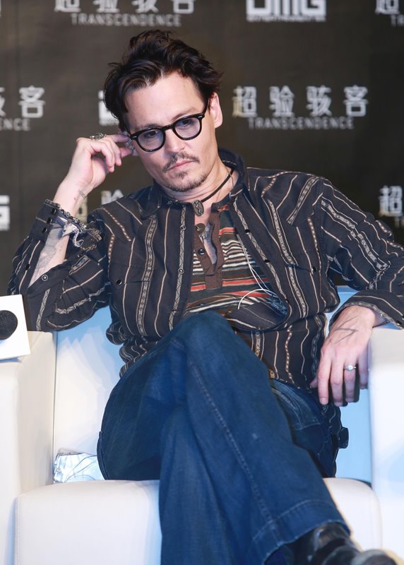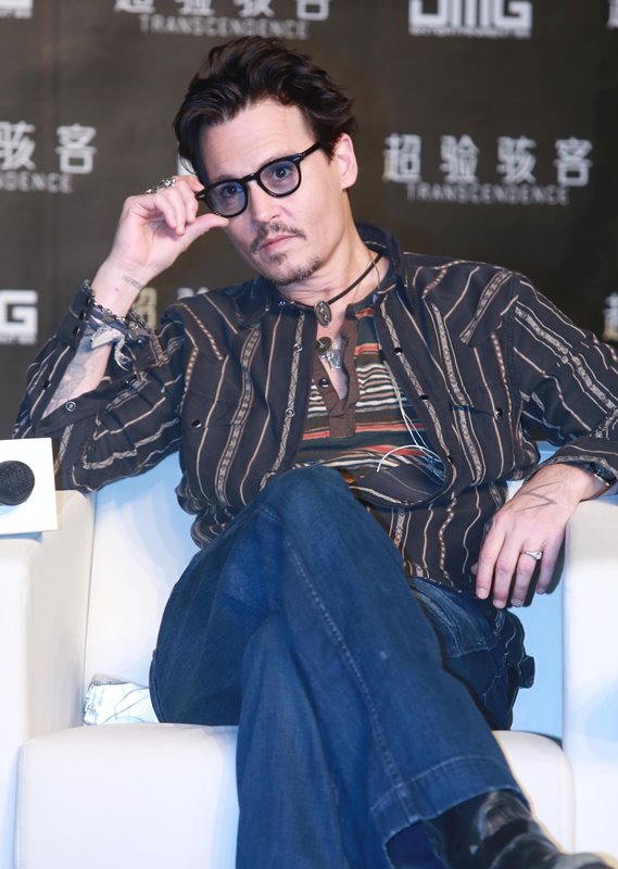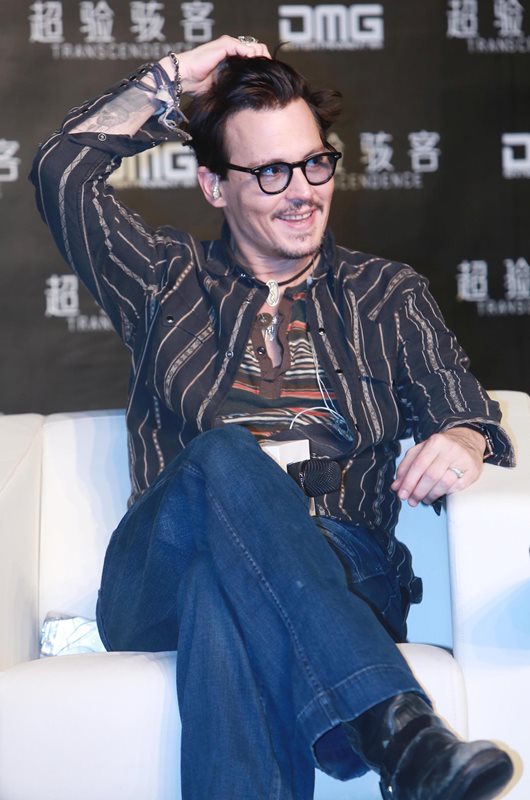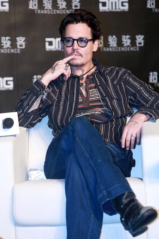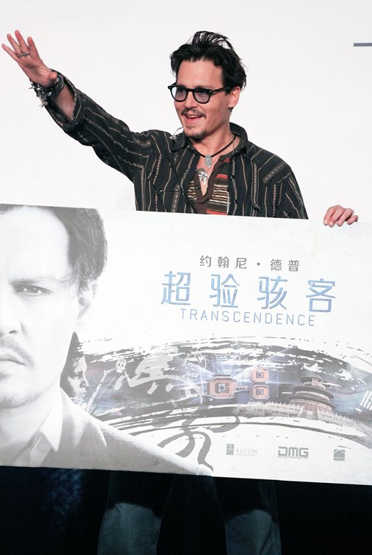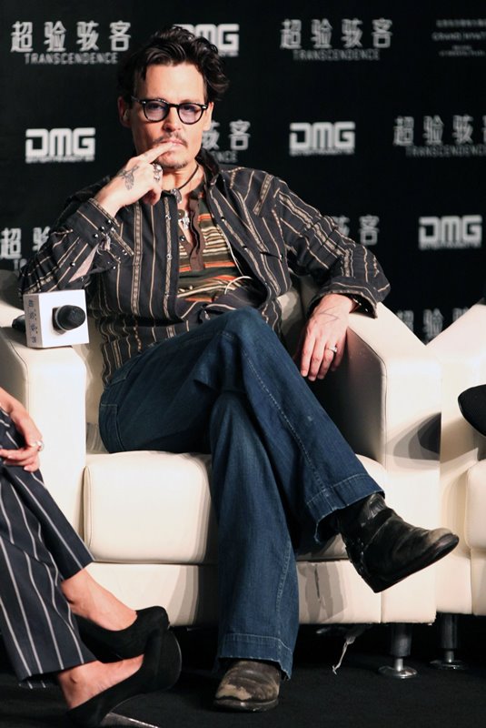 He’s being sweet with the fans in Beijing to promote Transcendence. I’m not being reminded that he’s engaged to a wannabe Angelina Jolie in her 20s. Feathers and scarves aren’t erupting all over his neck. It’s like a f-cking mirage. Now if only we could freeze him in this moment. Sitting down, rubbing his hands through his hair, smiling, pants obscured,