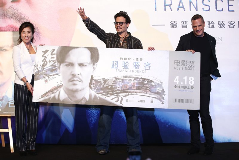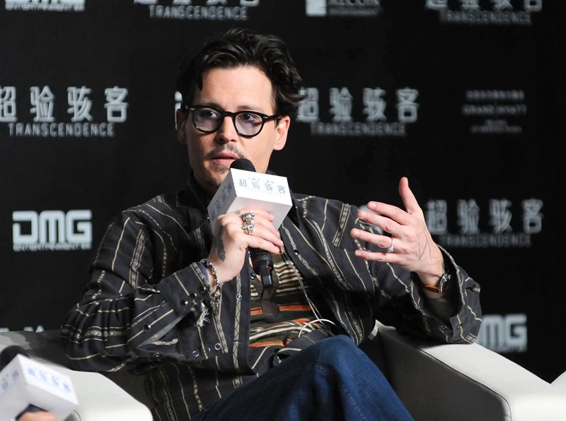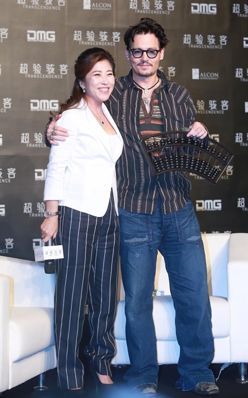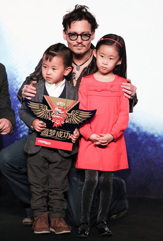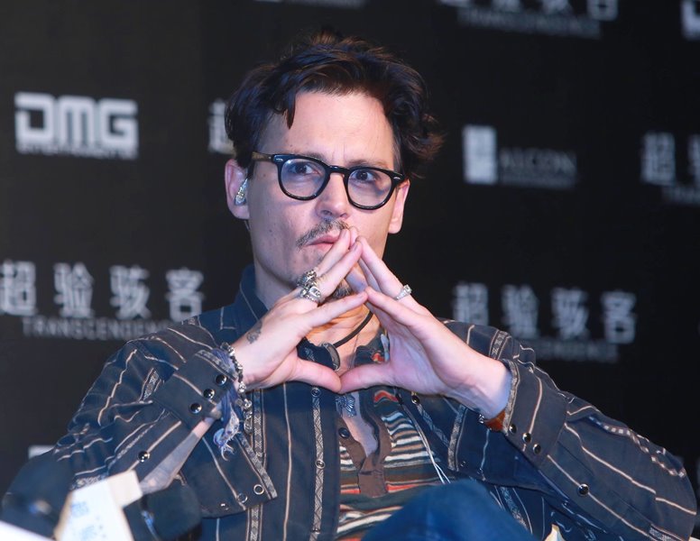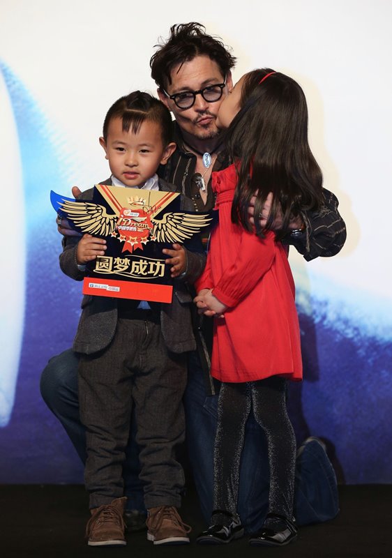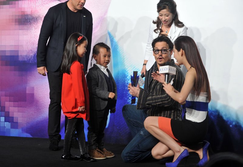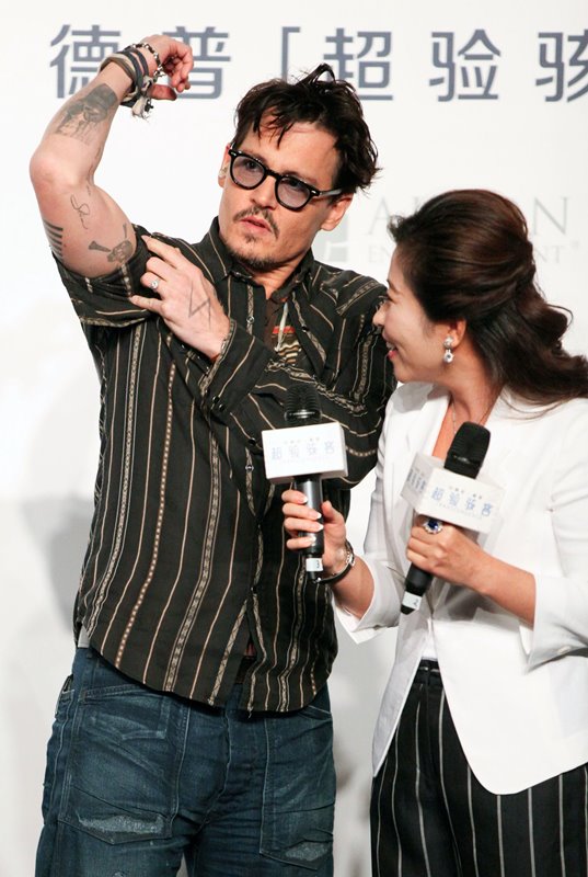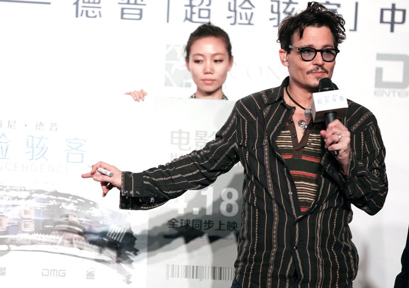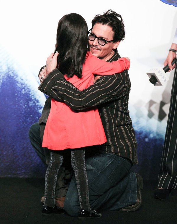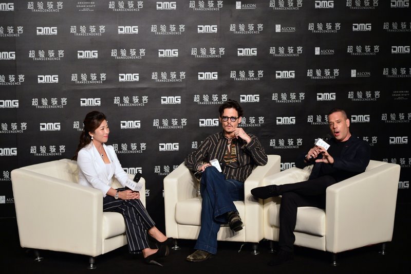 He’s being sweet with the fans in Beijing to promote Transcendence. I’m not being reminded that he’s engaged to a wannabe Angelina Jolie in her 20s. Feathers and scarves aren’t erupting all over his neck. It’s like a f-cking mirage. Now if only we could freeze him in this moment. Sitting down, rubbing his hands through his hair, smiling, pants obscured,
