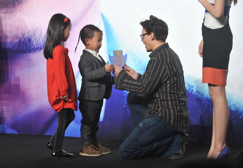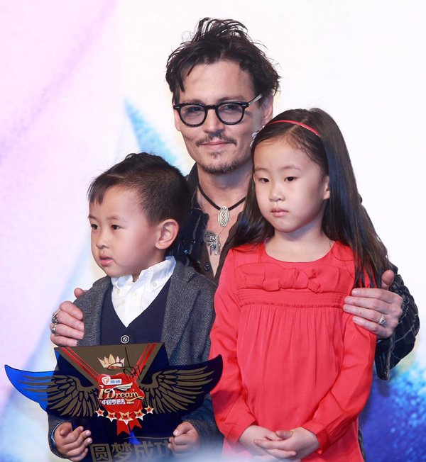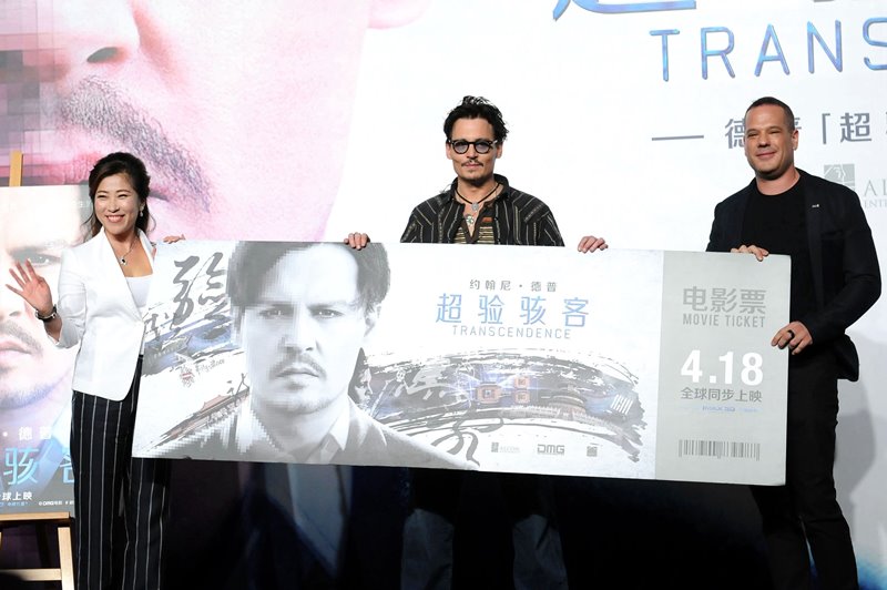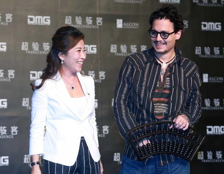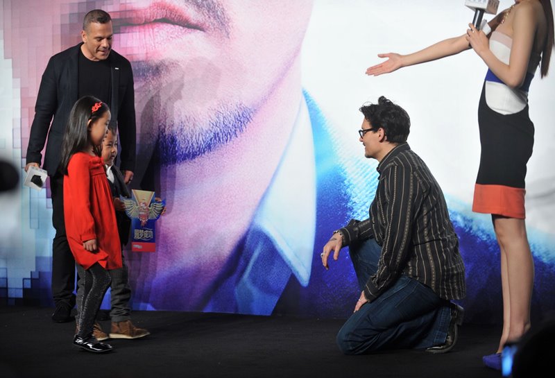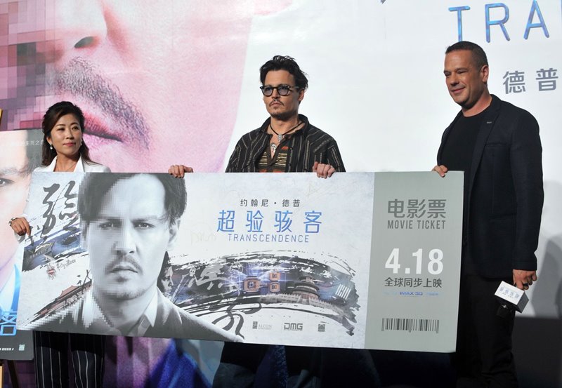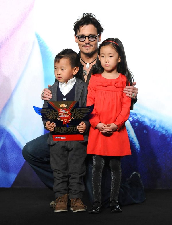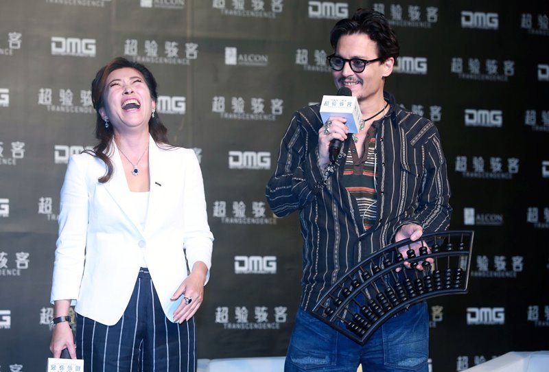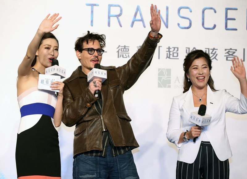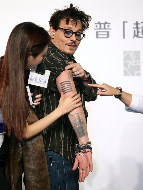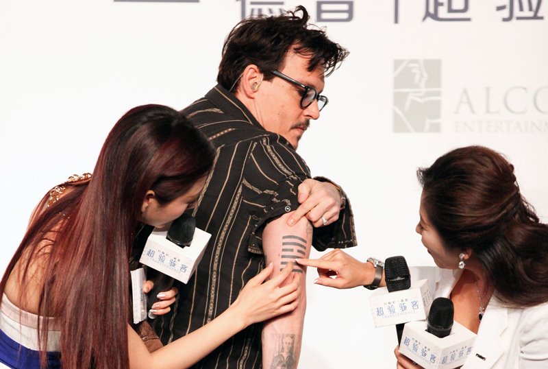 He’s being sweet with the fans in Beijing to promote Transcendence. I’m not being reminded that he’s engaged to a wannabe Angelina Jolie in her 20s. Feathers and scarves aren’t erupting all over his neck. It’s like a f-cking mirage. Now if only we could freeze him in this moment. Sitting down, rubbing his hands through his hair, smiling, pants obscured,