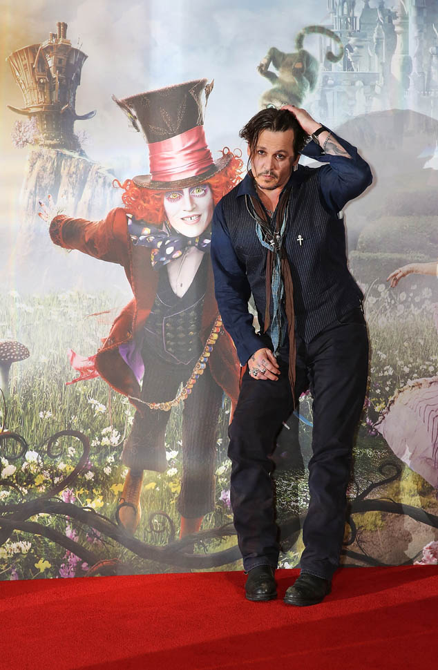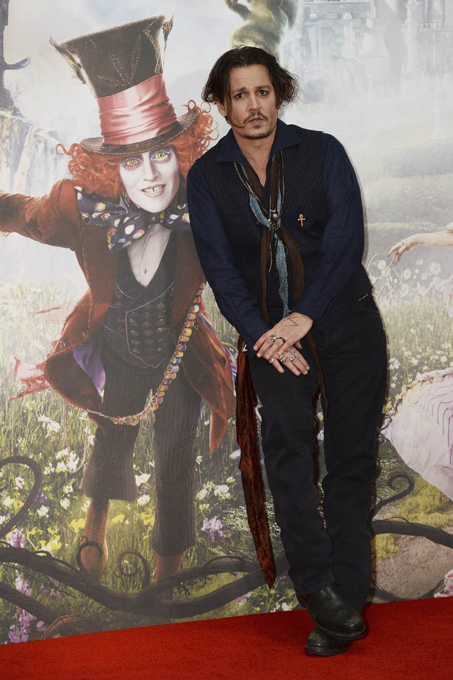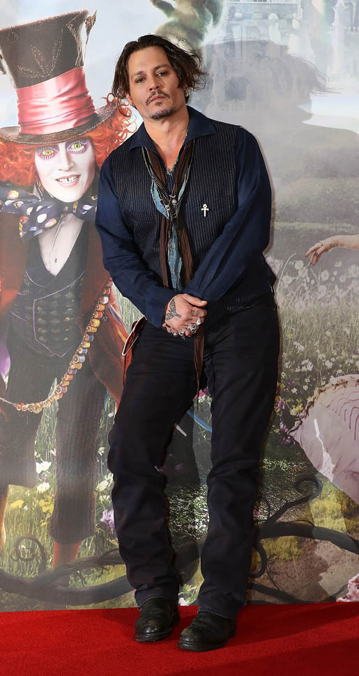 Johnny Depp was in London this weekend to promote Alice Through The Looking Glass which opens in a couple of weeks. As you can see, he’s hotter and cleaner than ever, with all those accoutrements hanging from his neck and waist and his eyeliner applied perfectly. Acting, don’t forget, is just a part-time job. Johnny Depp is, always, and forever, a musician mmmkay? Oh and, maybe, some kind of comedian? He might think he is.