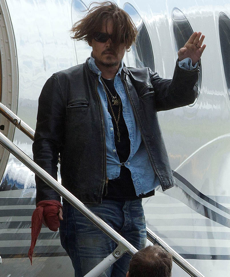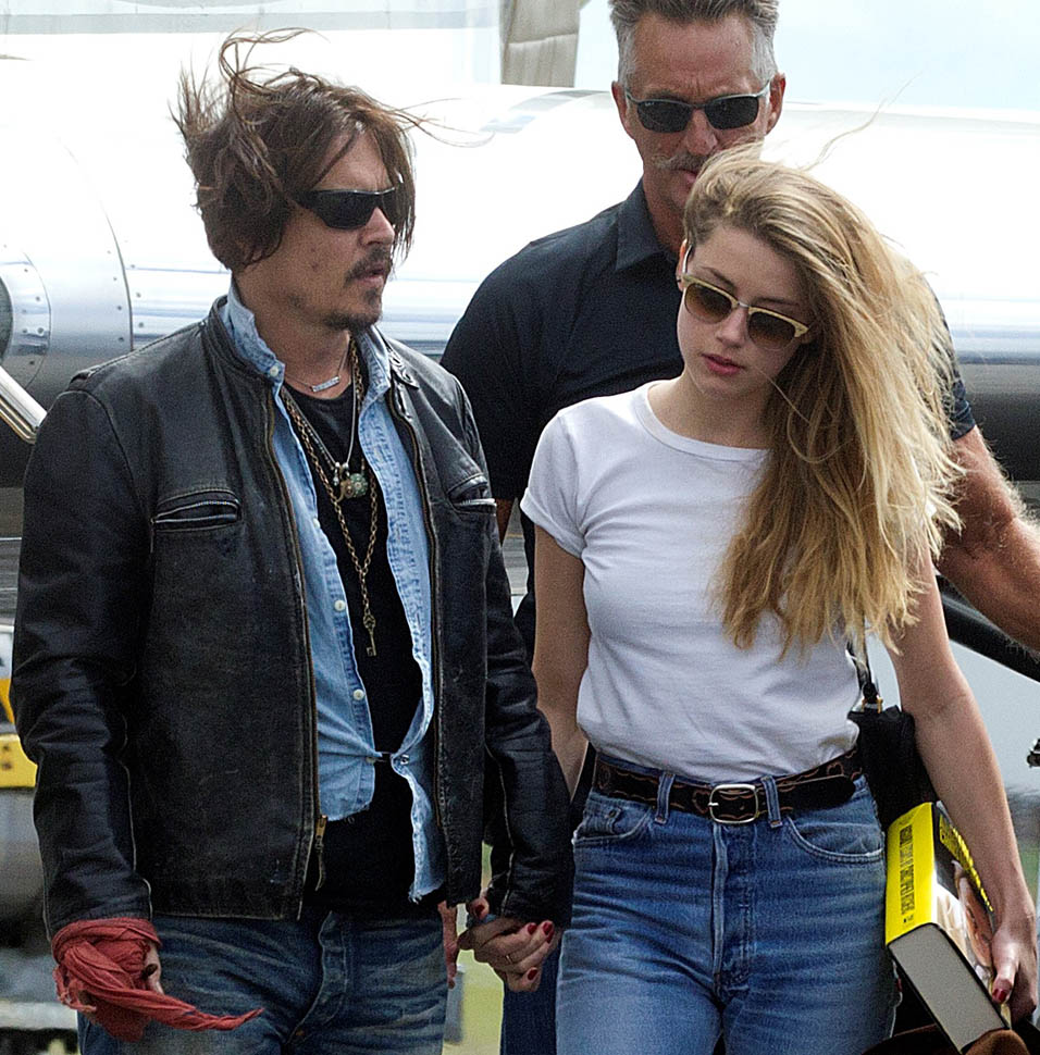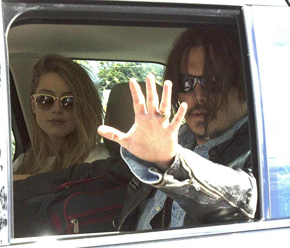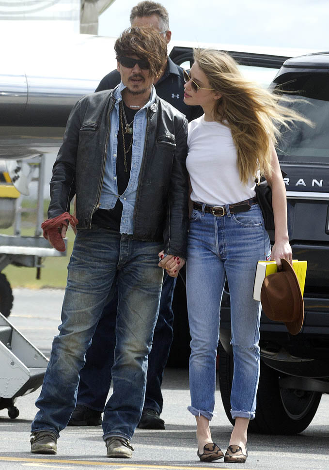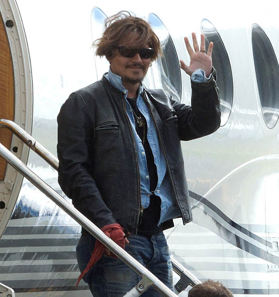 After all kinds of speculation about where he’s been the last month (click here for my post from yesterday), Johnny Depp returned to Australia today on a private jet with Amber Heard. Photographers were there to document the arrival, which was more like a show. He’s waving to his public. They’re holding hands. She has a big smile on her face.