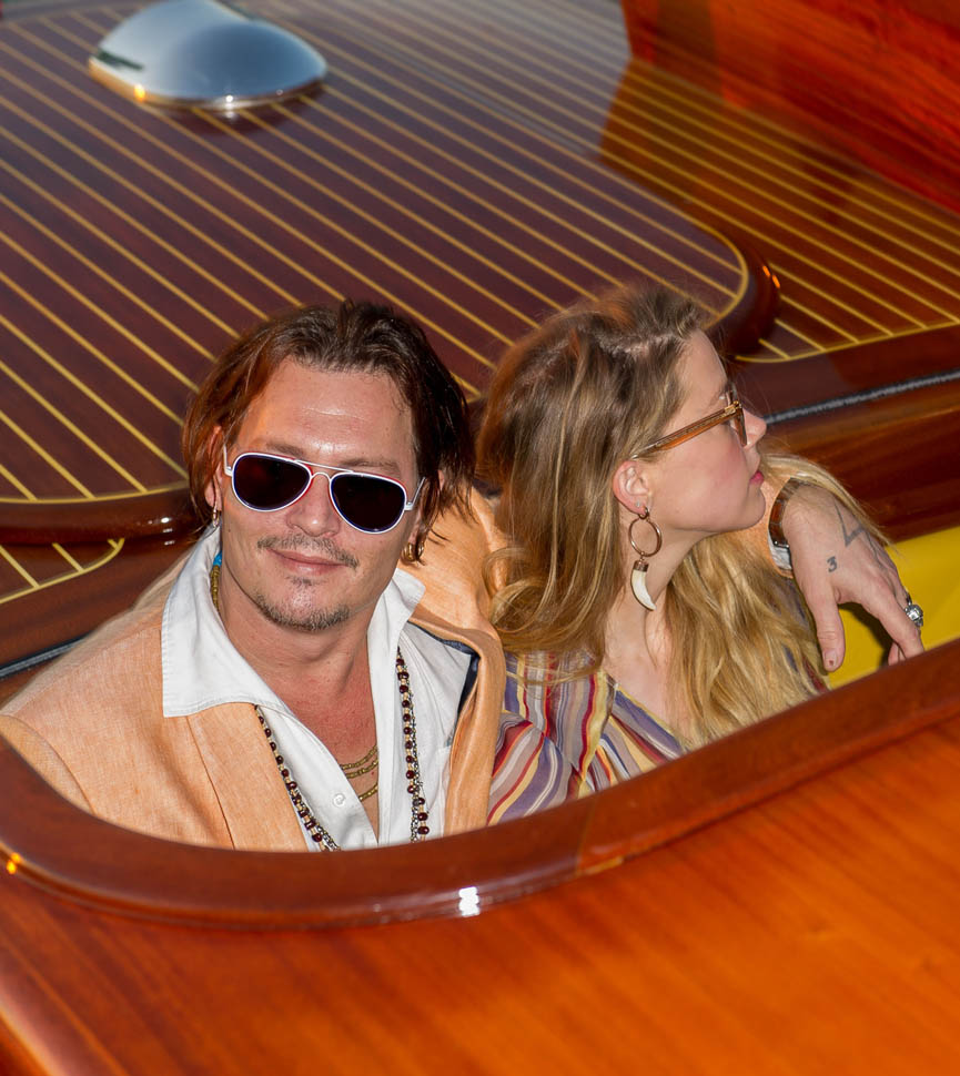 Anyway, can I direct your attention to Johnny’s footwear on the carpet? The thickness of the sole, it reminds me of Tom Cruise. Look at him. He thinks he’s badass, cool as f-ck. I’m still shocked that someone who used to be so appealing now repulses me so much. Check out these shots of them out for a ride on the water the other day. What is this colour? That jacket? God he has the worst taste in clothes.